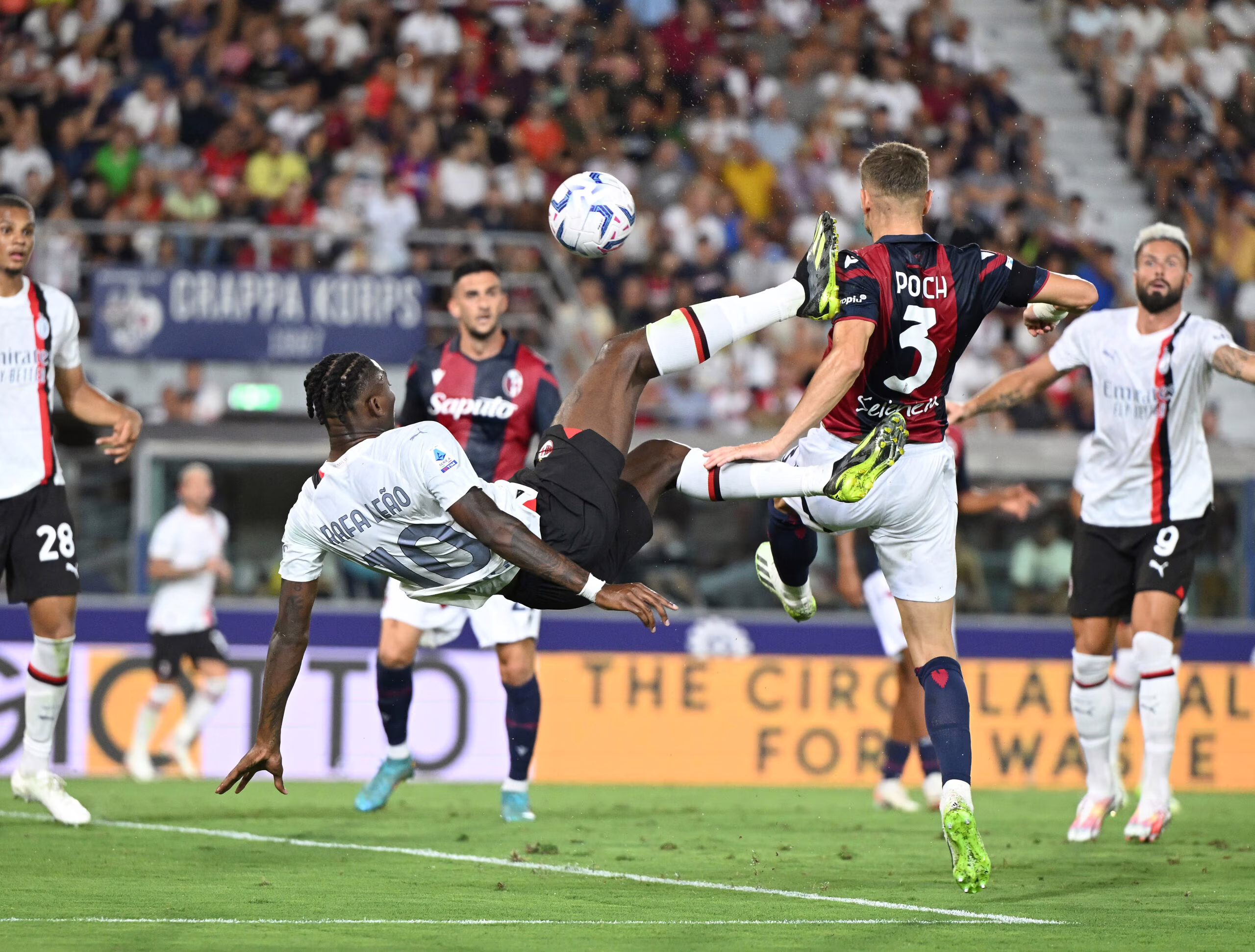 BOLOGNA, ITALY - AUGUST 21: Rafael Leao of AC Milan in action during the Serie A TIM match between Bologna FC and AC Milan at Stadio Renato Dall'Ara on August 21, 2023 in Bologna, Italy. (Photo by Claudio Villa/AC Milan via Getty Images)