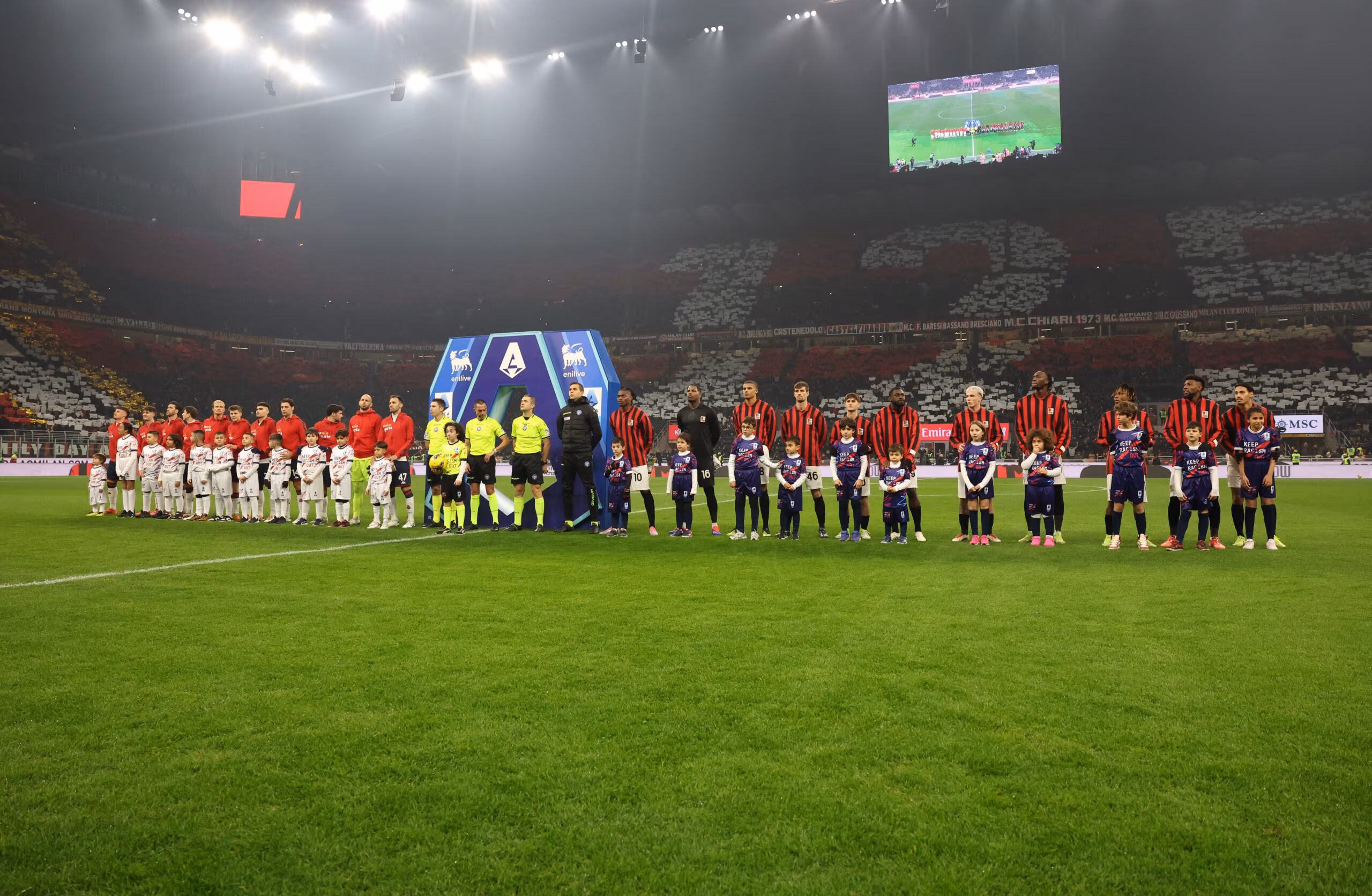 MILAN, ITALY - DECEMBER 15: Players of AC Milan line up prior to the Serie A match between AC Milan and Genoa at Stadio Giuseppe Meazza on December 15, 2024 in Milan, Italy. (Photo by Claudio Villa/AC Milan via Getty Images)