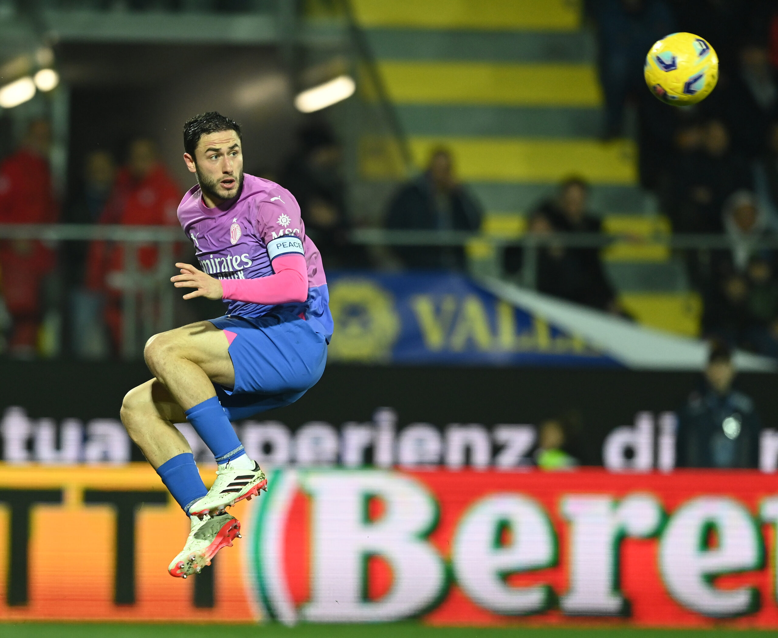 FROSINONE, ITALY - FEBRUARY 03: Davide Calabria of AC Milan in action during the Serie A TIM match between Frosinone Calcio and AC Milan at Stadio Benito Stirpe on February 03, 2024 in Frosinone, Italy. (Photo by Claudio Villa/AC Milan via Getty Images)