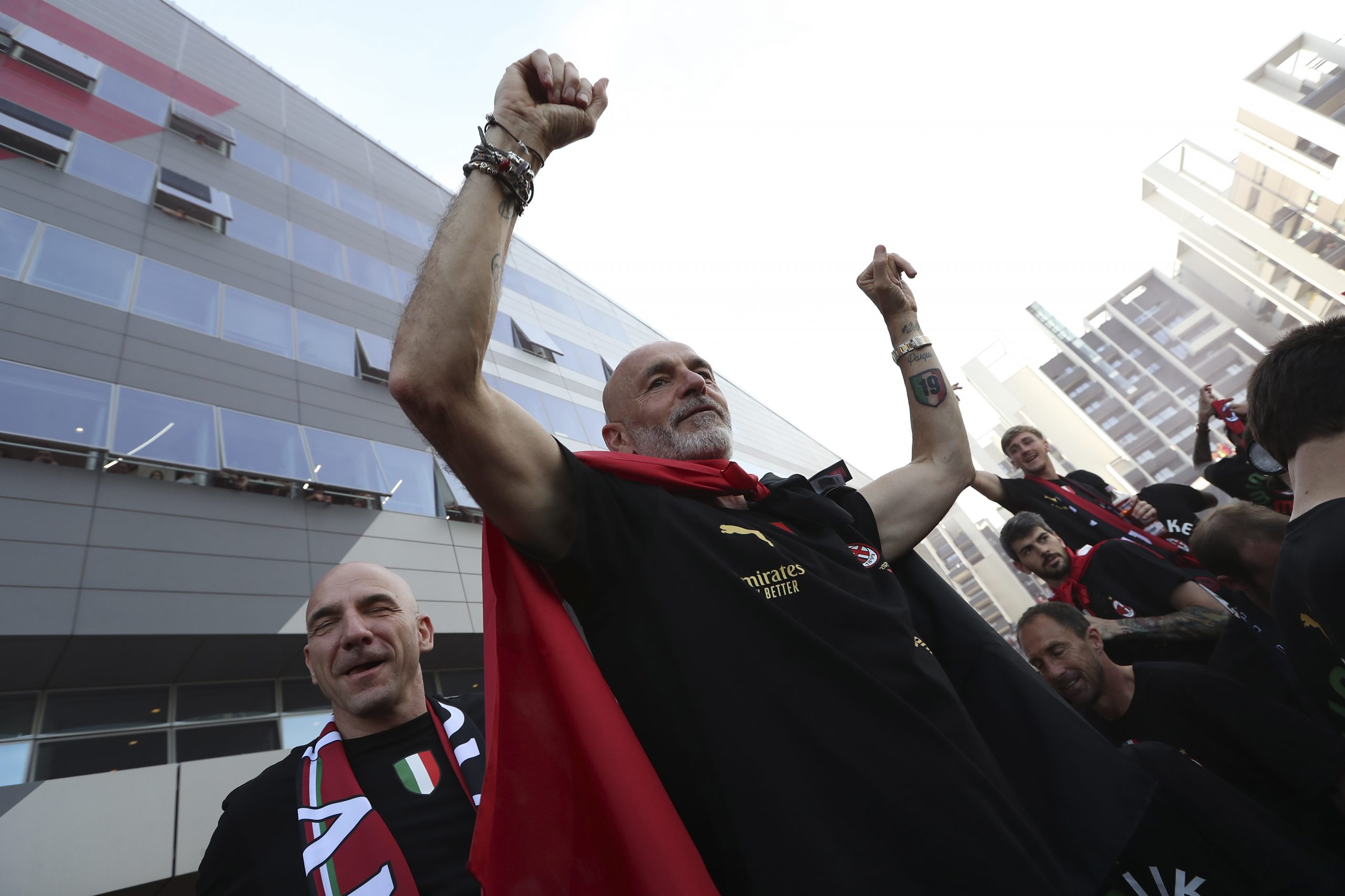 Stefano Pioli esulta con i tifosi per lo scudetto