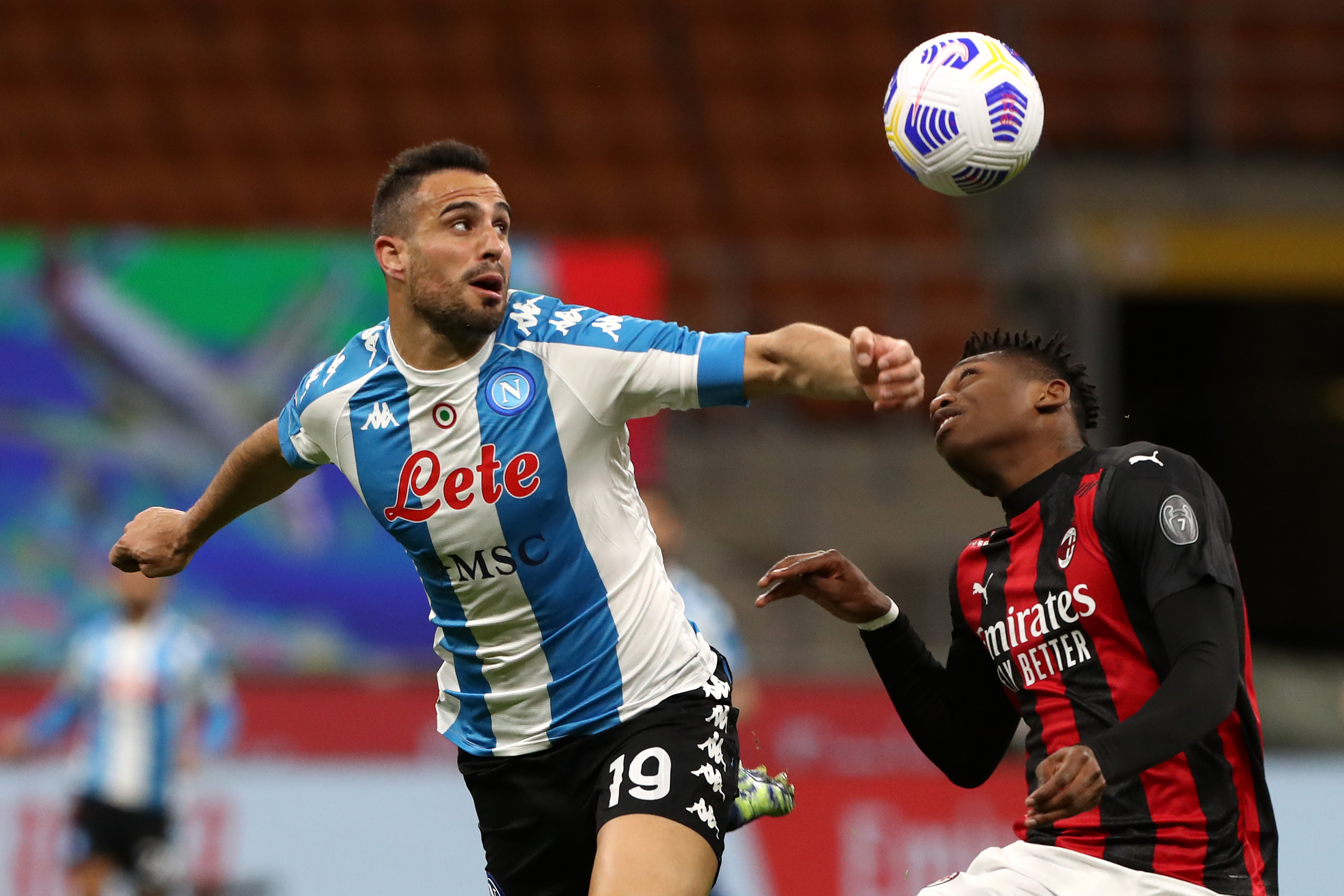 Rafael Leao ingaggia una battaglia aerea con il difensore del Napoli, Maksimovic