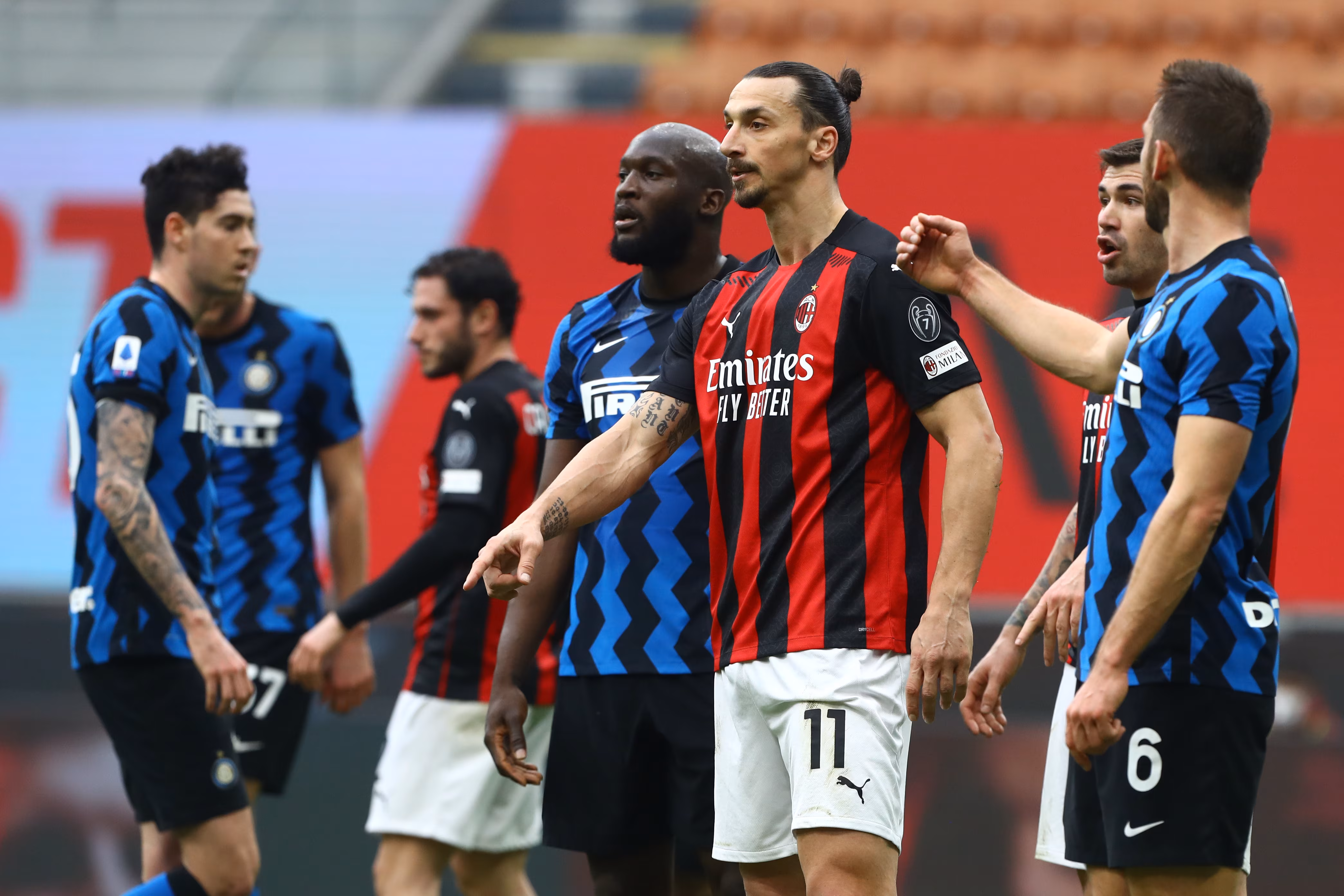 Ibrahimovic e Lukaku a confronto su un calcio piazzato per l'Inter