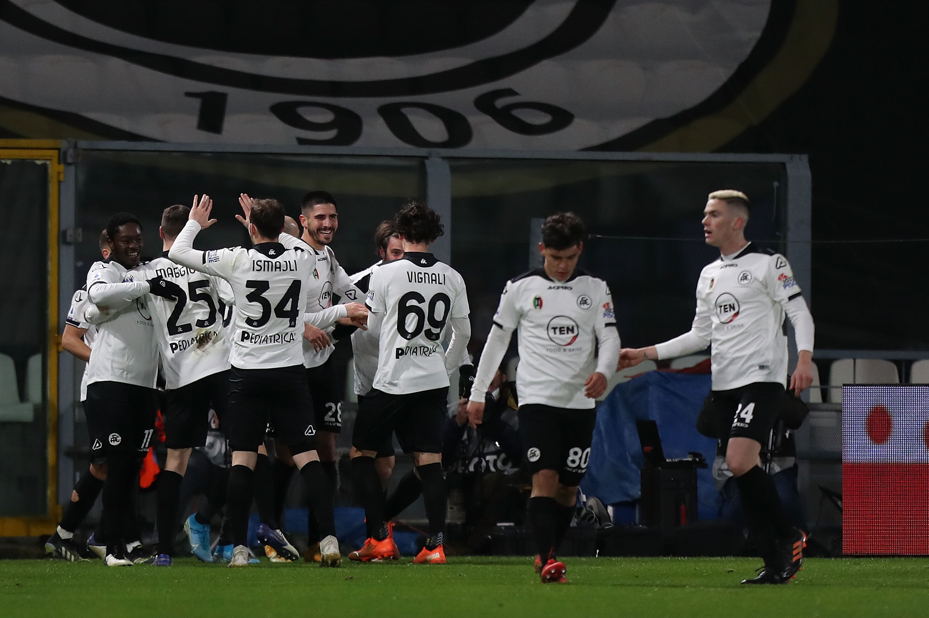 L'esultanza dello Spezia dopo il secondo goal al Milan