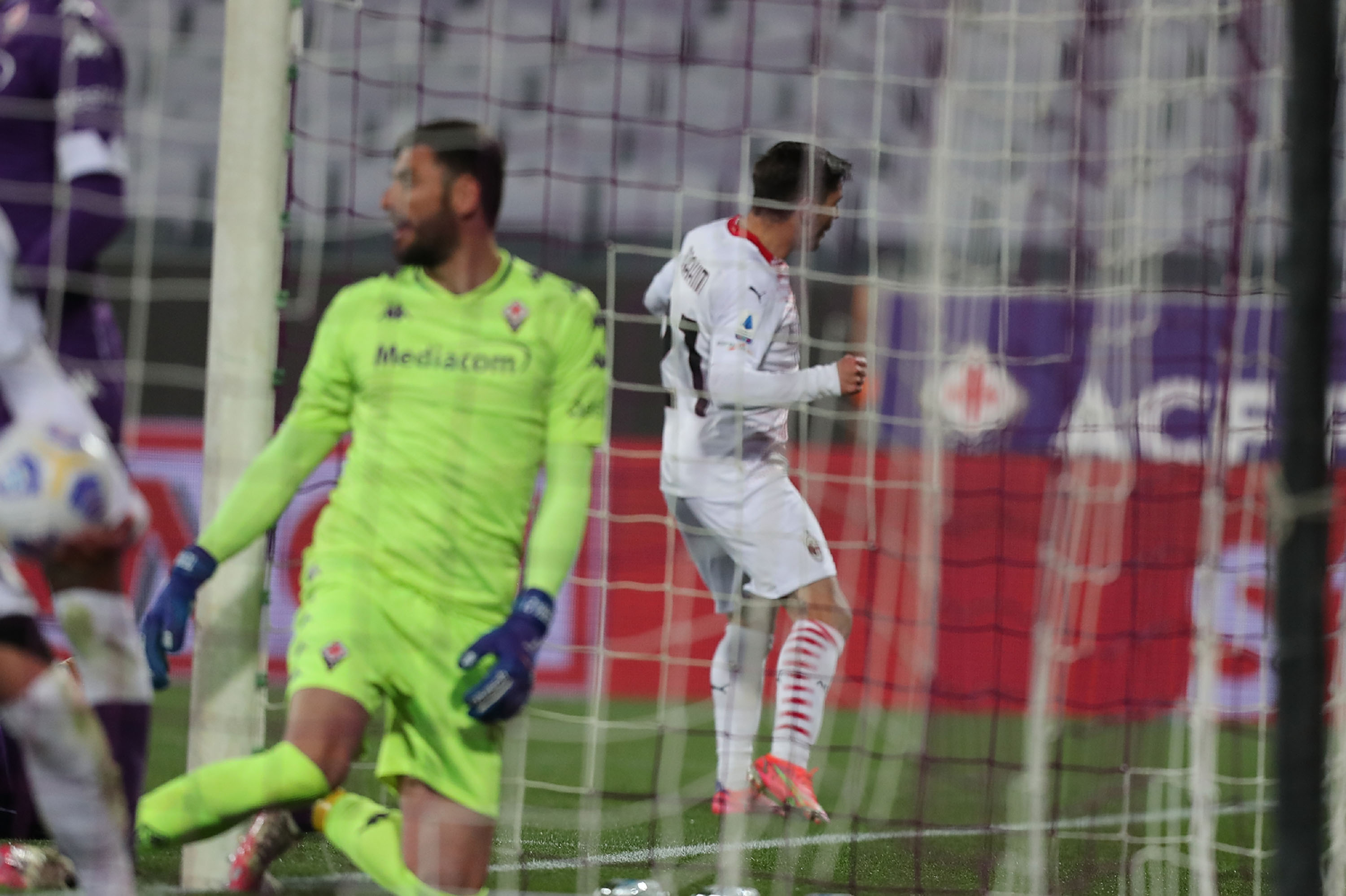 Brahim Diaz esulta dopo la rete alla Fiorentina