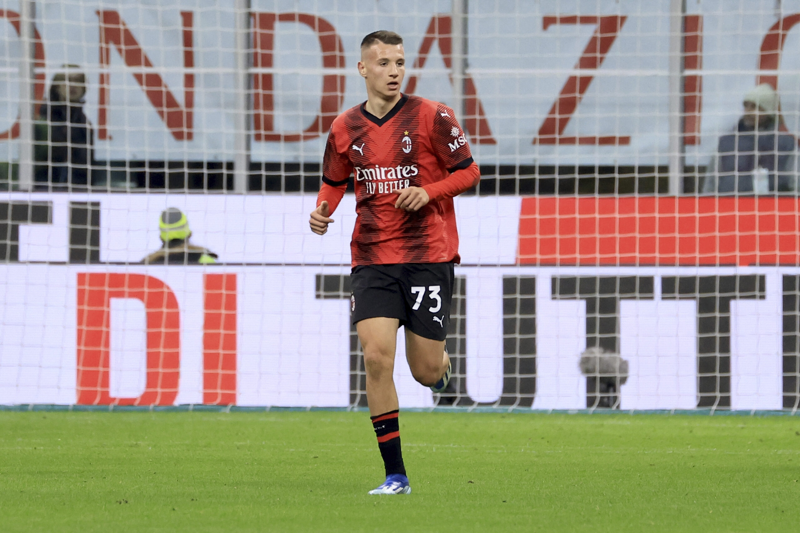 MILAN, ITALY - NOVEMBER 25: Francesco Camarda of AC Milan looks on during the Serie A TIM match between AC Milan and ACF Fiorentina at Stadio Giuseppe Meazza on November 25, 2023 in Milan, Italy. (Photo by Giuseppe Cottini/AC Milan via Getty Images )