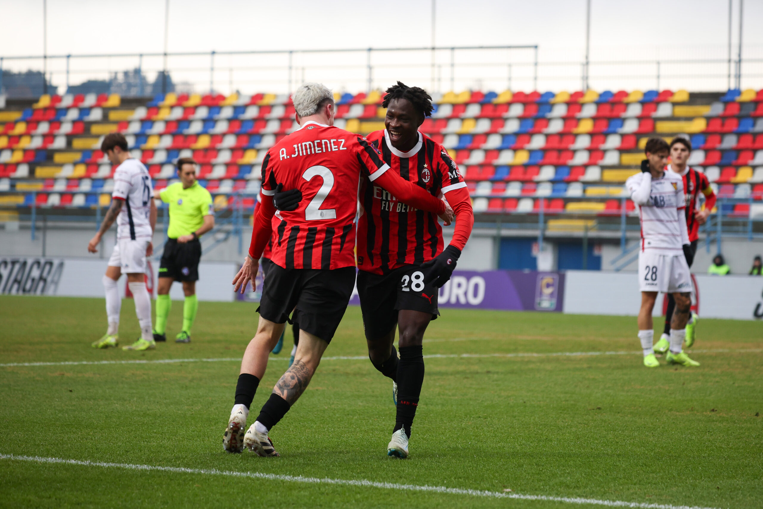 SOLBIATE ARNO, ITALY - DECEMBER 08: Chaka Traorè of Milan Futuro scores his team's first goal during the Serie C match between Milan Futuro and Gubbio at Stadio Felice Chinetti on December 08, 2024 in Solbiate Arno, Italy. (Photo by Sara Cavallini/AC Milan via Getty Images)