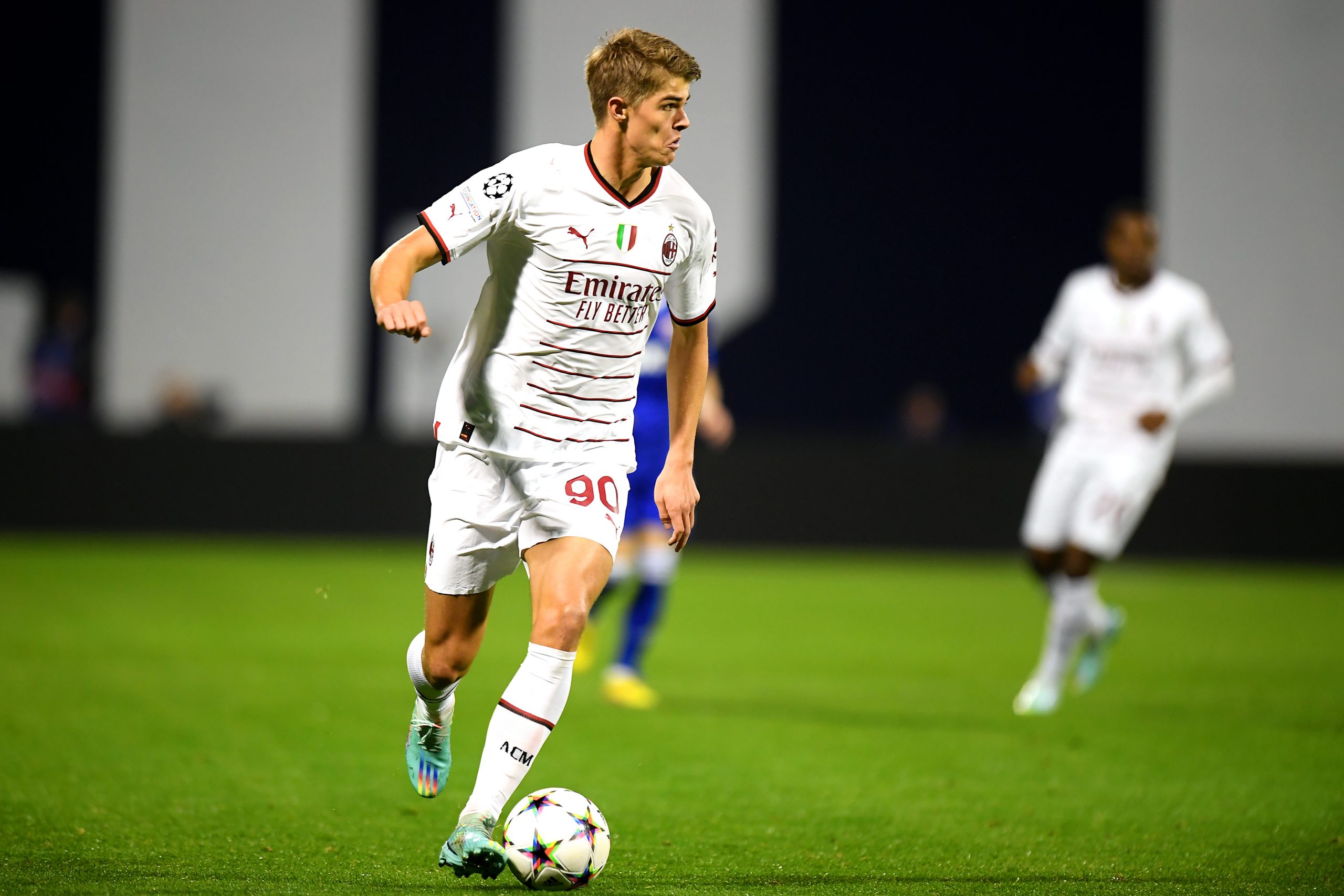 ZAGREB, CROATIA - OCTOBER 25: Charles De Ketelaere of AC Milan runs with the ball during the UEFA Champions League group E match between Dinamo Zagreb and AC Milan at Stadion Maksimir on October 25, 2022 in Zagreb, Croatia. (Photo by Jurij Kodrun/Getty Images)