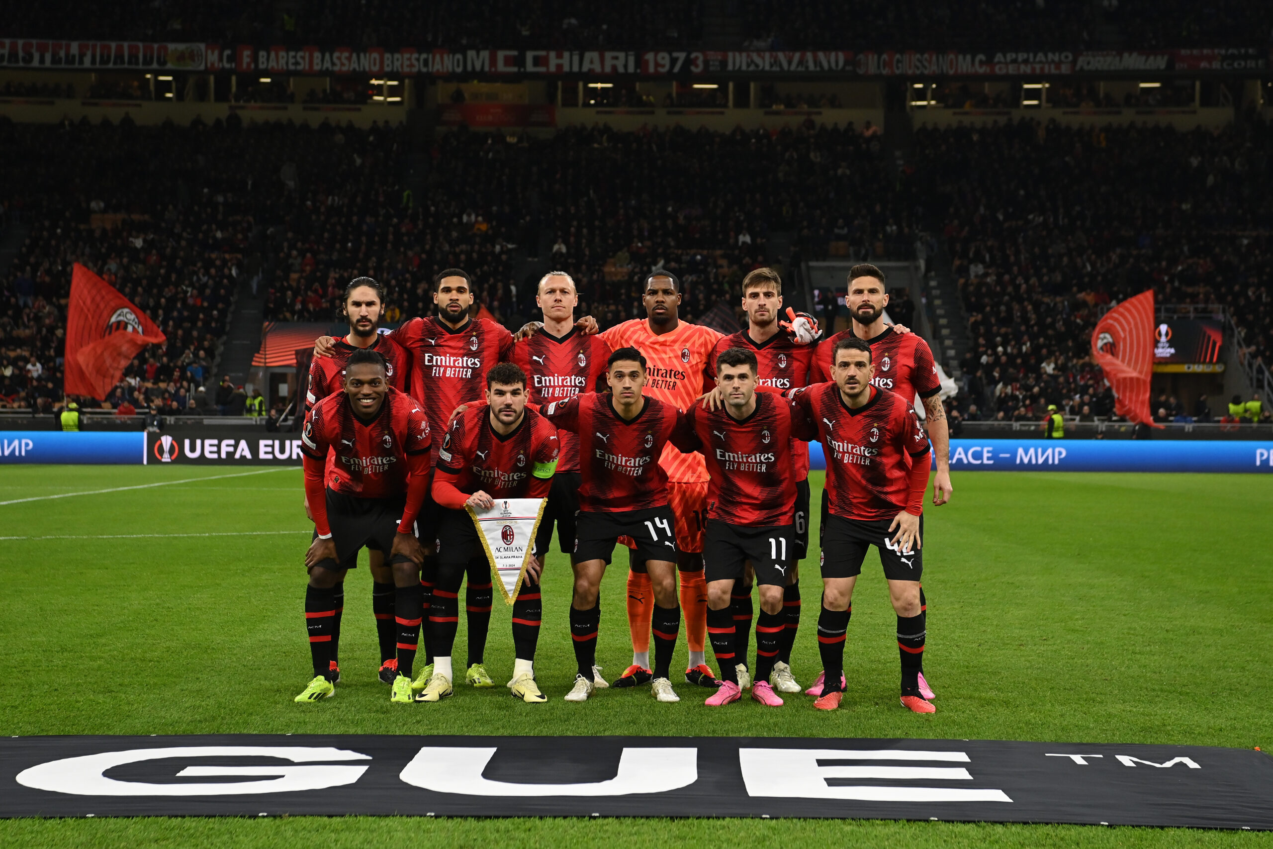 MILAN, ITALY - MARCH 07: Players of AC Milan line up prior to the UEFA Europa League 2023/24 round of 16 first leg match between AC Milan and Slavia Praha at Stadio Giuseppe Meazza on March 07, 2024 in Milan, Italy. (Photo by Claudio Villa/AC Milan via Getty Images) (Photo by Claudio Villa/AC Milan via Getty Images)