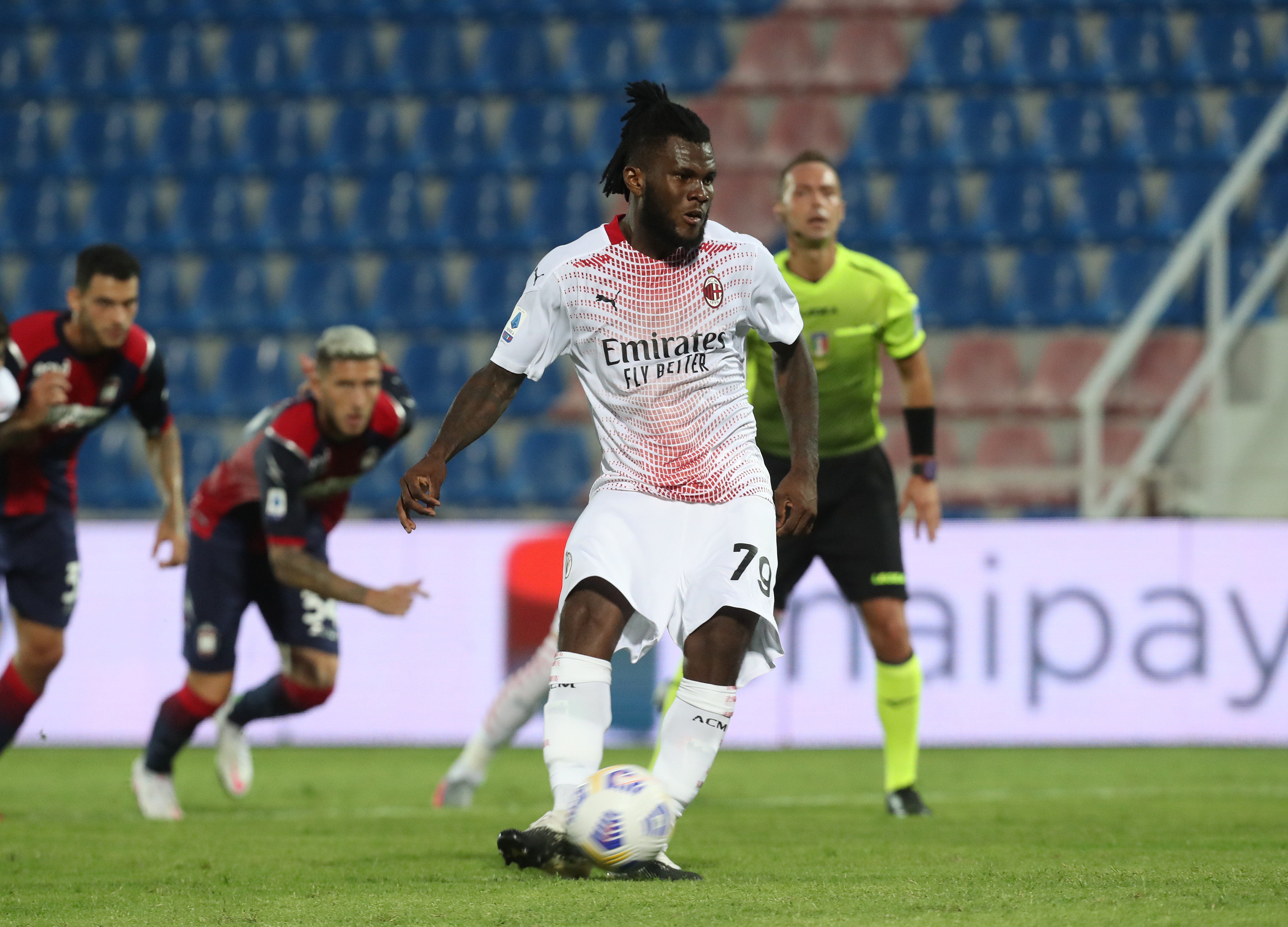 CROTONE, ITALY - SEPTEMBER 27: Frank Kessie of Milan scores his team's opening goal during the Serie A match between FC Crotone and AC Milan at Stadio Comunale Ezio Scida on September 27, 2020 in Crotone, Italy. (Photo by Maurizio Lagana/Getty Images)