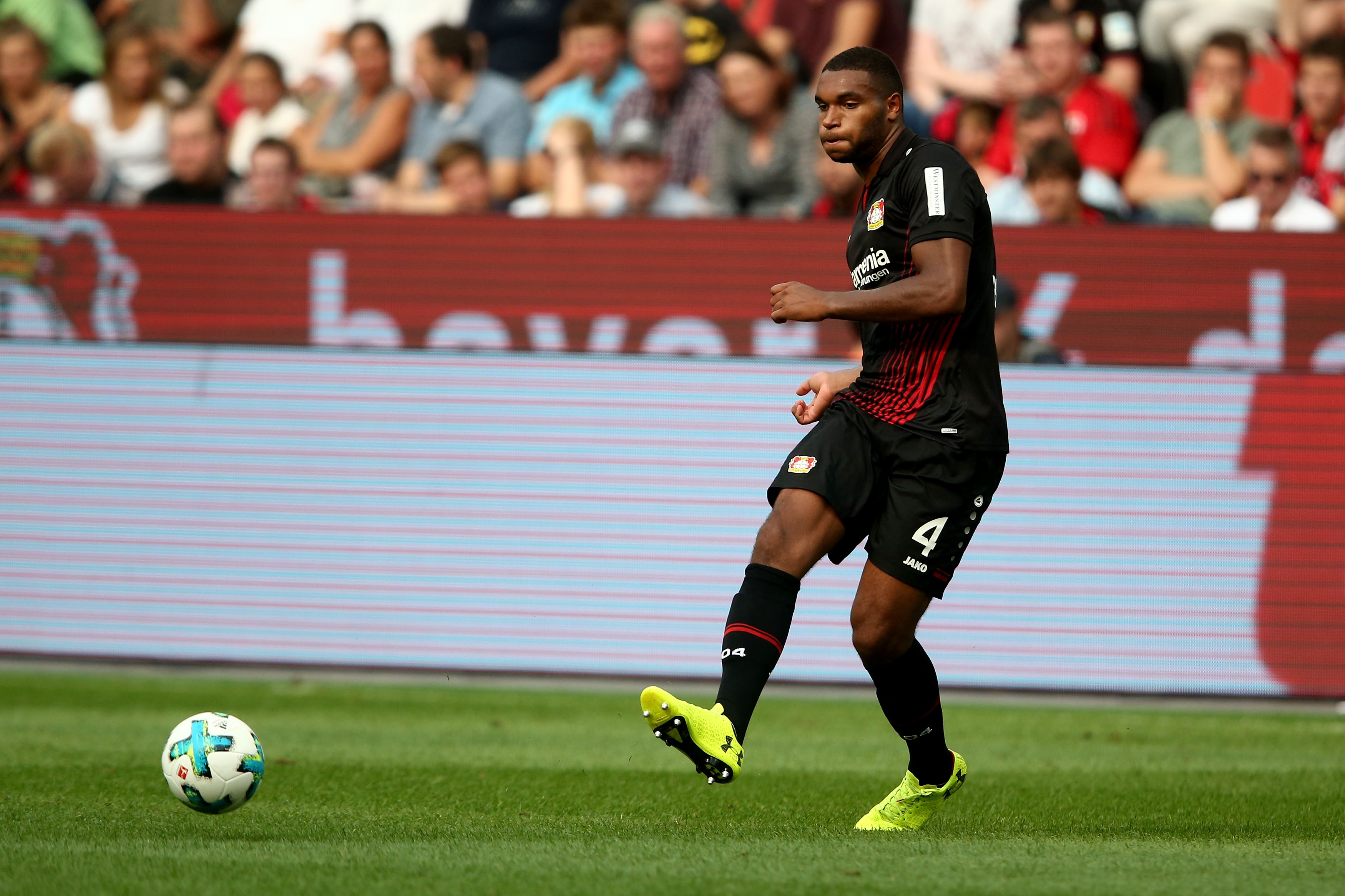 LEVERKUSEN, GERMANY - AUGUST 26: Jonathan Tah of Hoffenheim runs with the ball during the Bundesliga match between Bayer 04 Leverkusen and TSG 1899 Hoffenheim at BayArena on August 26, 2017 in Leverkusen, Germany. (Photo by Christof Koepsel/Bongarts/Getty Images)