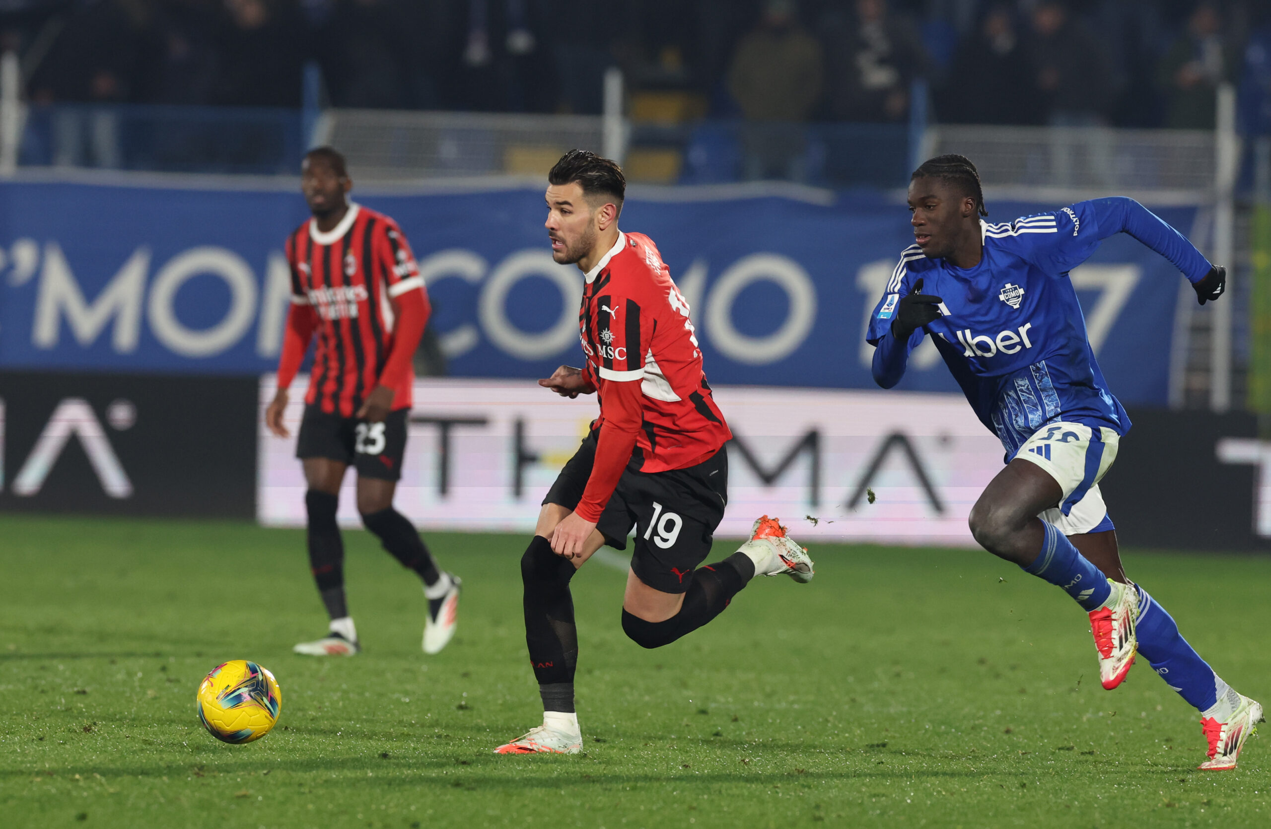 COMO, ITALY - JANUARY 14: Theo Hernande of AC Milan in action during the Serie match between Como and Milan at Stadio G. Sinigaglia on January 14, 2025 in Como, Italy. (Photo by Claudio Villa/AC Milan via Getty Images)