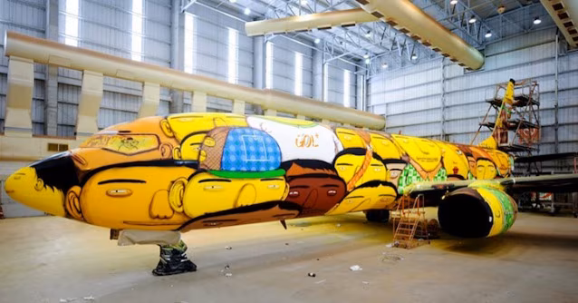 In occasione dei Mondiali del 2014, i fratelli Gustavo e Otavio Pandolfo, in arte Os Gêmeos, hanno decorato il Boing della nazionale brasiliana realizzando un vero e proprio capolavoro. A sottolineare il valore del loro lavoro, sono arrivate le parole di Florence Scappini, Direttore Marketing per GOL: “Questa è un’opera d’arte in onore dei tifosi brasiliani e della nostra squadra!” VAI AL PROSSIMO >>>