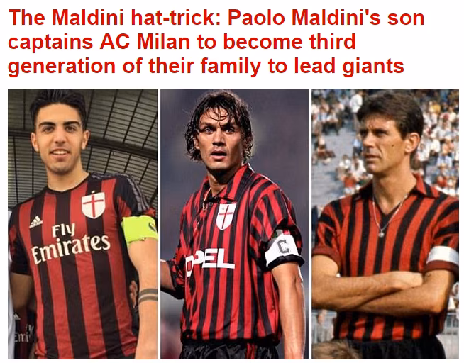 DALL’INGHILTERRA – Il Daily Mail ha voluto raccontare l’episodio. Nonno, padre e figlio tutti con la fascia da capitano del Milan, e ancora deve crescere il fratellino Daniel di 14 anni che nell’ultima partita è andato in goal. Il quotidiano inglese ha voluto anche sottolineare come la mitica maglia numero 3 sia stata ritirata e di come potrebbe tornare in auge una volta che Christian farà il salto in prima squadra.