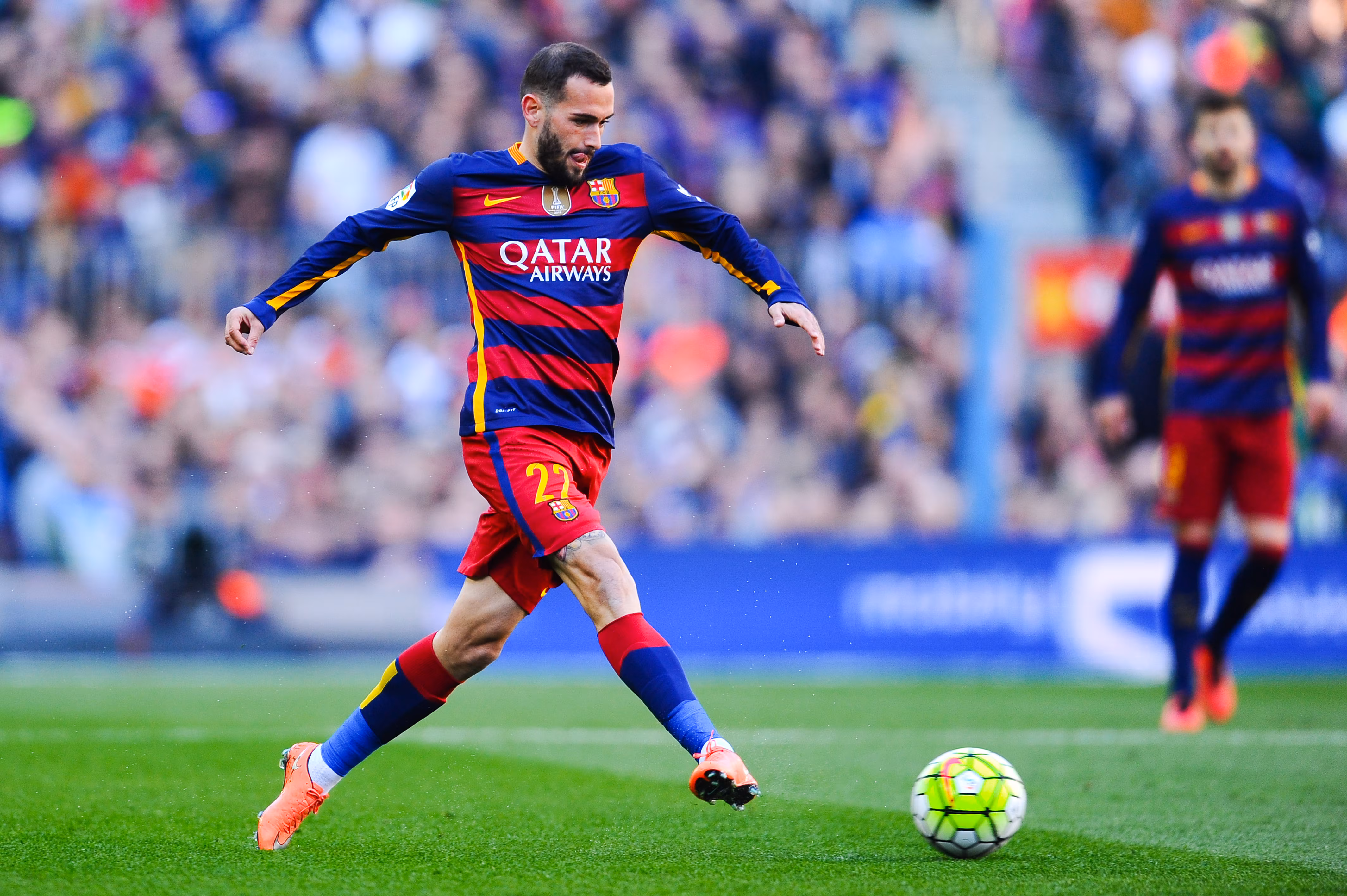 BARCELONA, SPAIN - MARCH 12: Aleix Vidal of FC Barcelona runs with the ball during the La Liga match between FC Barcelona and Getafe CF at Camp Nou on March 12, 2016 in Barcelona, Spain. (Photo by David Ramos/Getty Images)