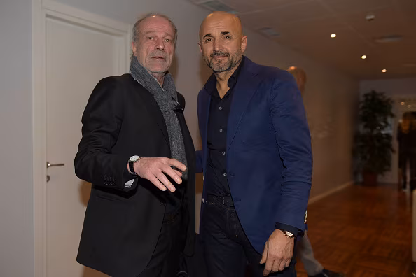 ROME, ITALY - JANUARY 14: New coach of AS Roma Luciano Spalletti poses with AS Roma Sport Director Walter Sabatini upon arriving in Trigoria on January 14, 2016 in Rome, Italy. (Photo by Luciano Rossi/AS Roma via Getty Images)