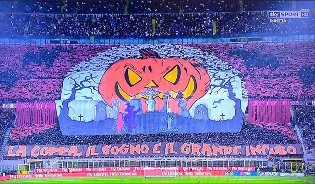 MILANO – Sold out a San Siro per Milan-Juventus e la Curva Sud rossonera non ha fatto mancare il suo apporto. Poco prima del fischio d’inizio è stata infatti messa in scena una coreografia in stile Halloween indirizzata ai tifosi juventini, in risposta al monito rossonero che recita: “Vincere non è importante, è l’unica cosa che conta”