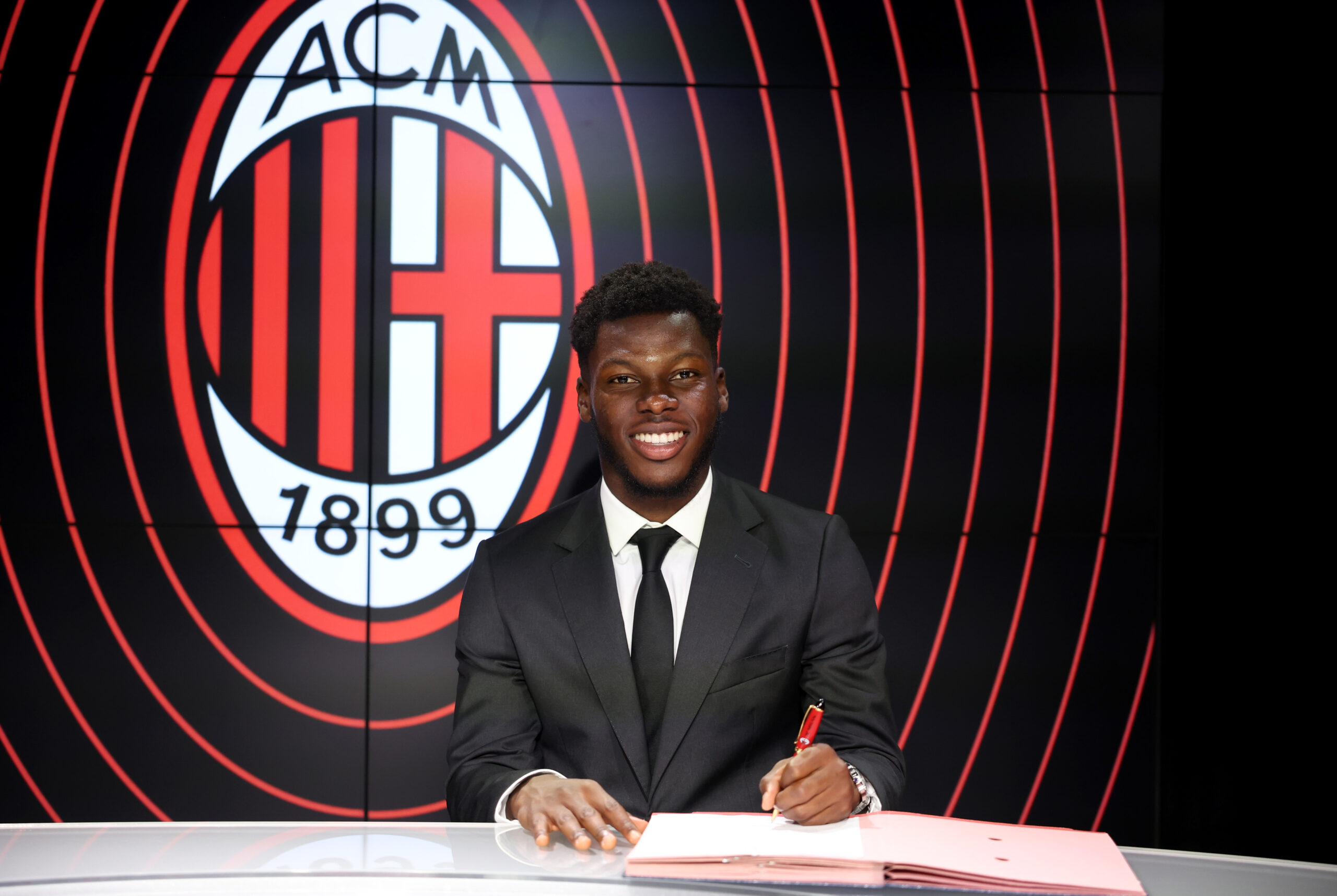 MILAN, ITALY - AUGUST 04: AC Milan new signing Yunus Dimoara Musah signs his contract with the Club at Casa Milan on August 04, 2023 in Milan, Italy. (Photo by AC Milan/AC Milan via Getty Images)