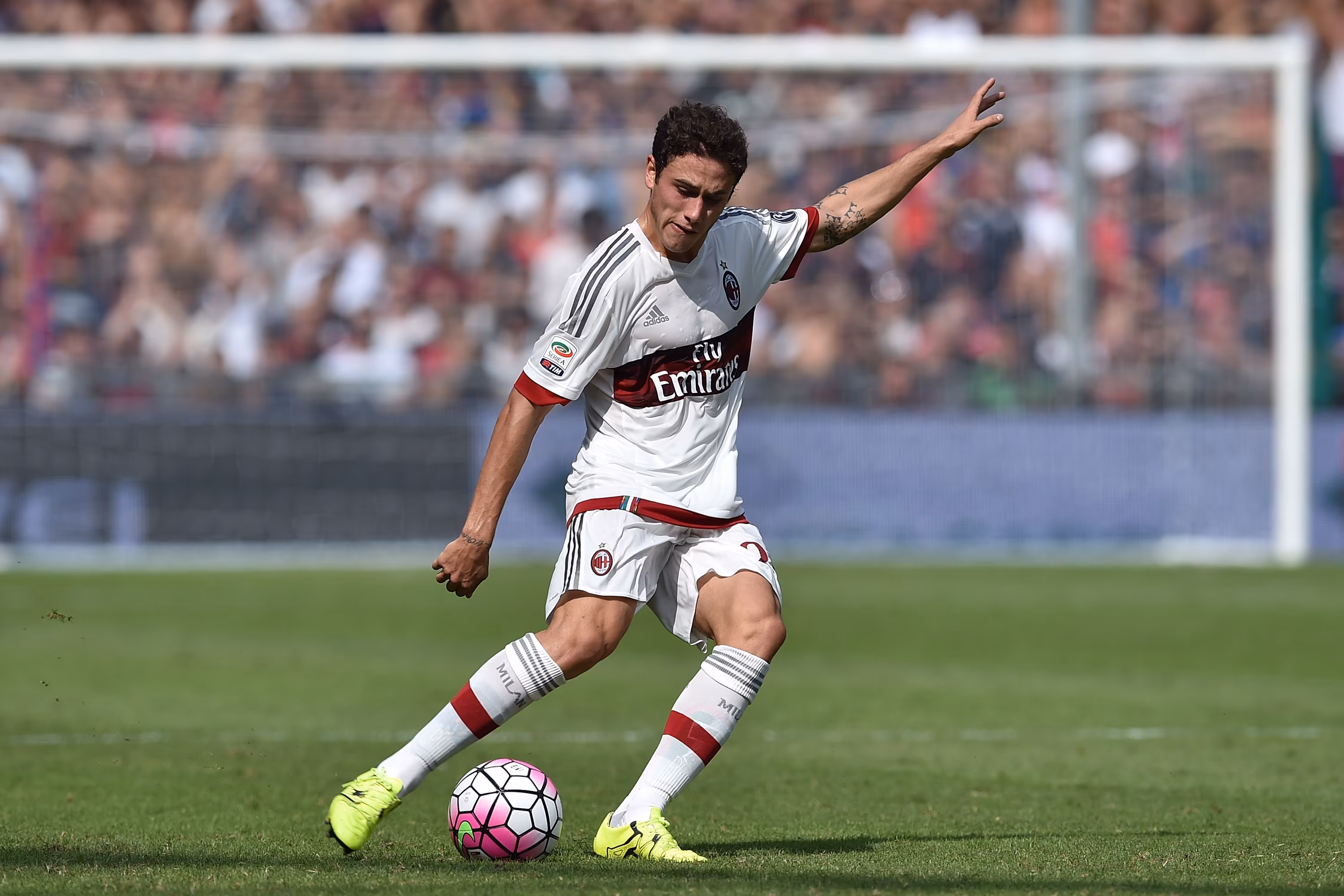 GENOA, ITALY - SEPTEMBER 27: Davide Calabria of AC Milan in action during the Serie A match between Genoa CFC and AC Milan at Stadio Luigi Ferraris on September 27, 2015 in Genoa, Italy. (Photo by Valerio Pennicino/Getty Images)