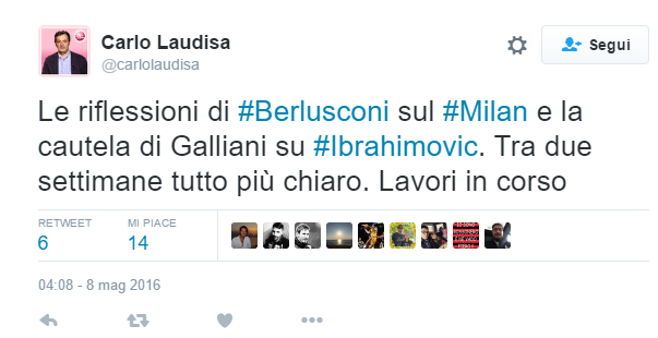 MILANO – Carlo Laudisa, giornalista della Gazzetta dello Sport, ha twittato sulla questioni riguardanti la cessione del Milan.