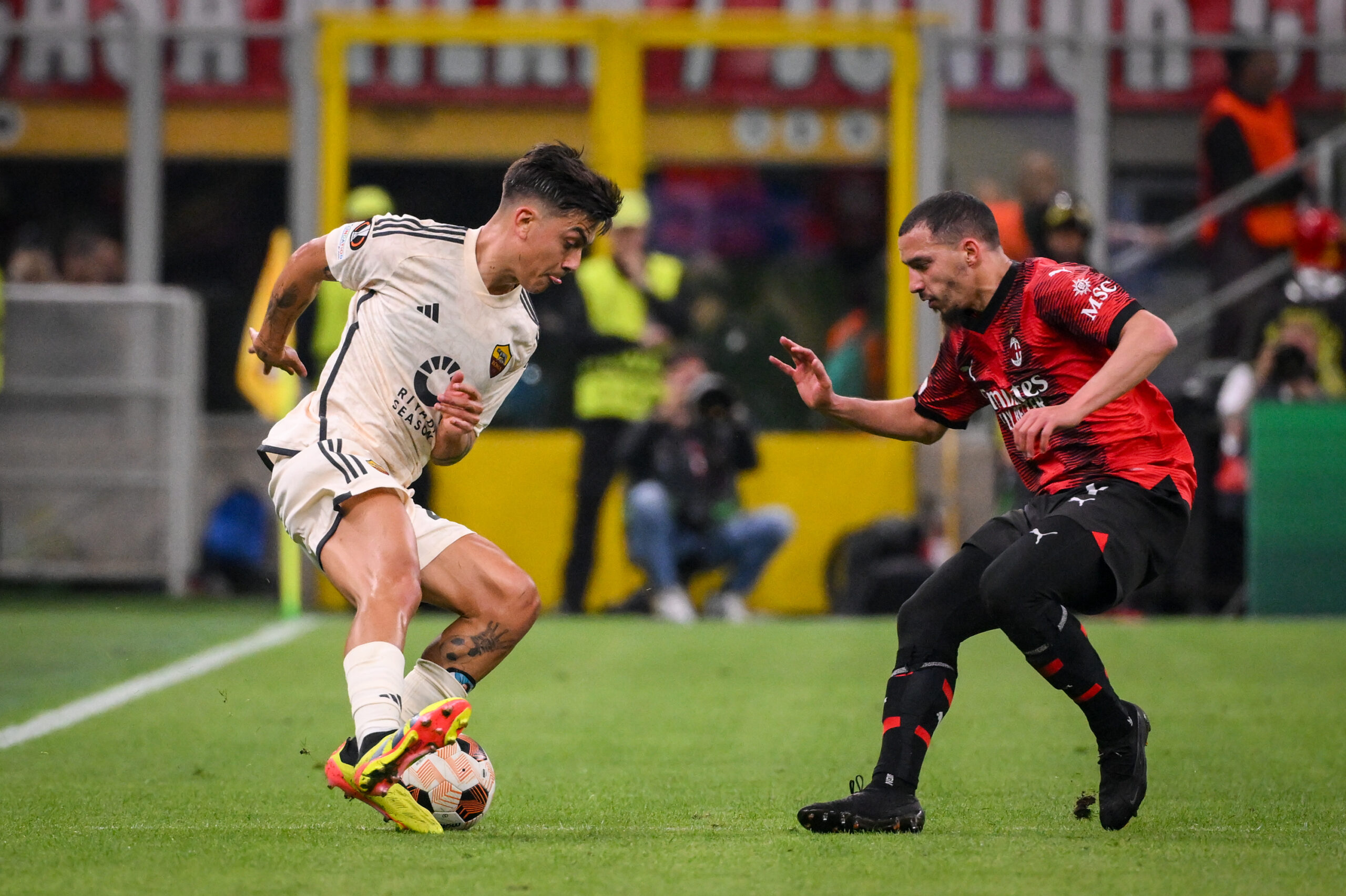 MILAN, ITALY - APRIL 11: Paulo Dybala of AS Roma in action during the UEFA Europa League 2023/24 Quarter-Final first leg match between AC Milan and AS Roma at Stadio Giuseppe Meazza on April 11, 2024 in Milan, Italy. (Photo by Fabio Rossi/AS Roma via Getty Images)