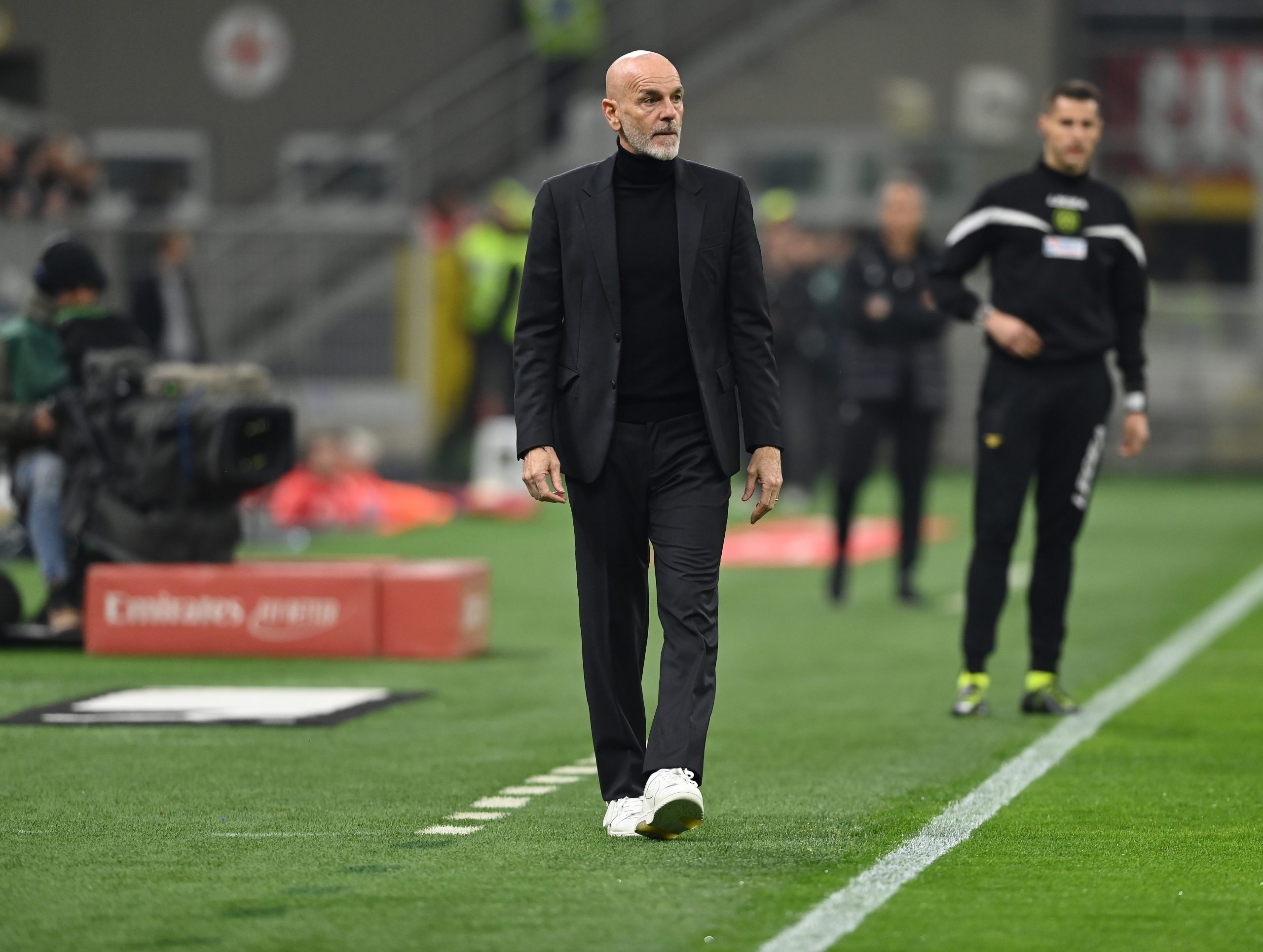 MILAN, ITALY - MARCH 13: Head coach of AC Milan Stefano Pioli reacts during the Serie A match between AC Milan and Salernitana at Stadio Giuseppe Meazza on March 13, 2023 in Milan, . (Photo by Claudio Villa/AC Milan via Getty Images)