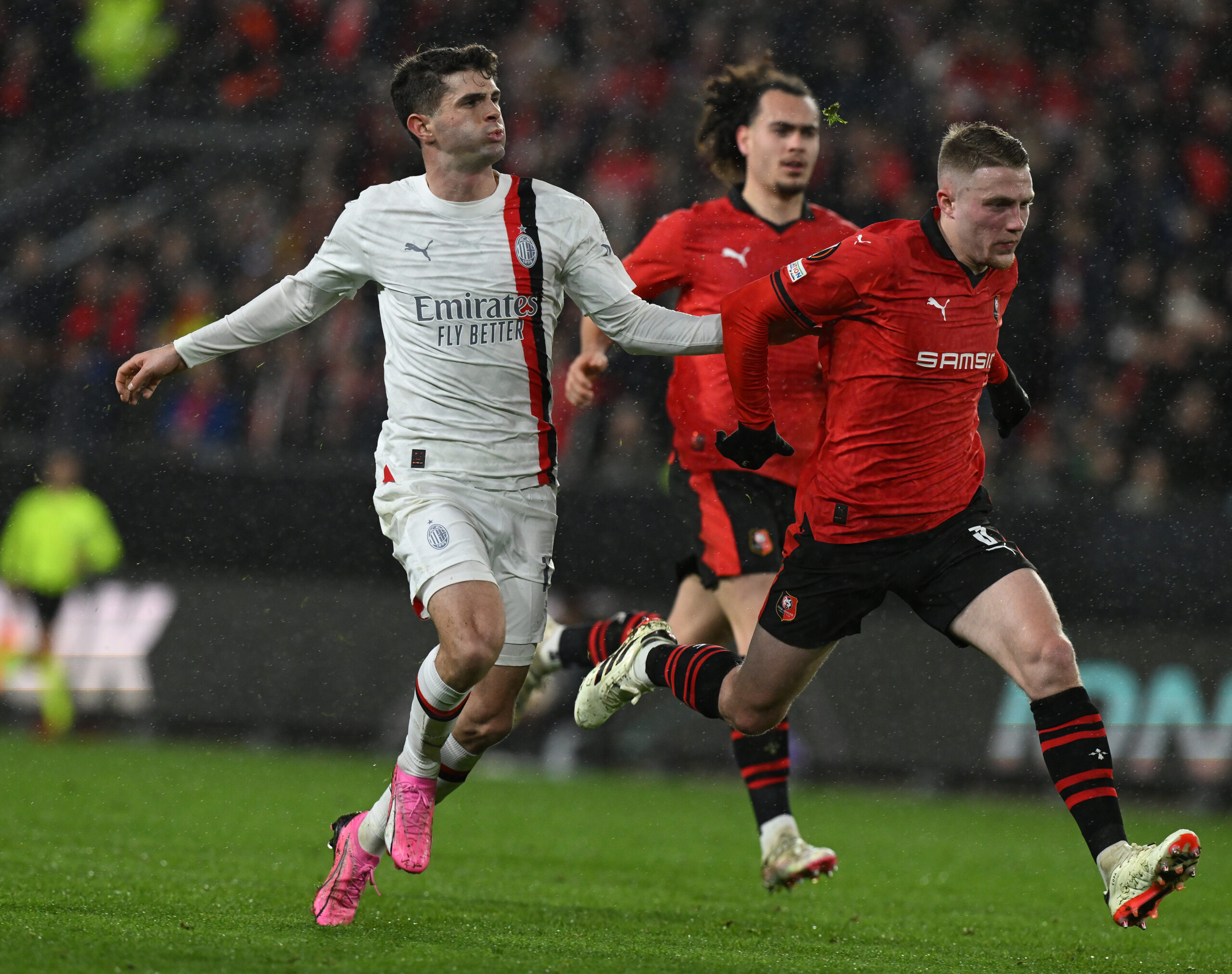 RENNES, FRANCE - FEBRUARY 22: Christian Pulisic of AC Milan in action during the UEFA Europa League 2023/24 playoff second leg match between Stade Rennais FC and AC Milan at Roazhon Park on February 22, 2024 in Rennes, France. (Photo by Claudio Villa/AC Milan via Getty Images)