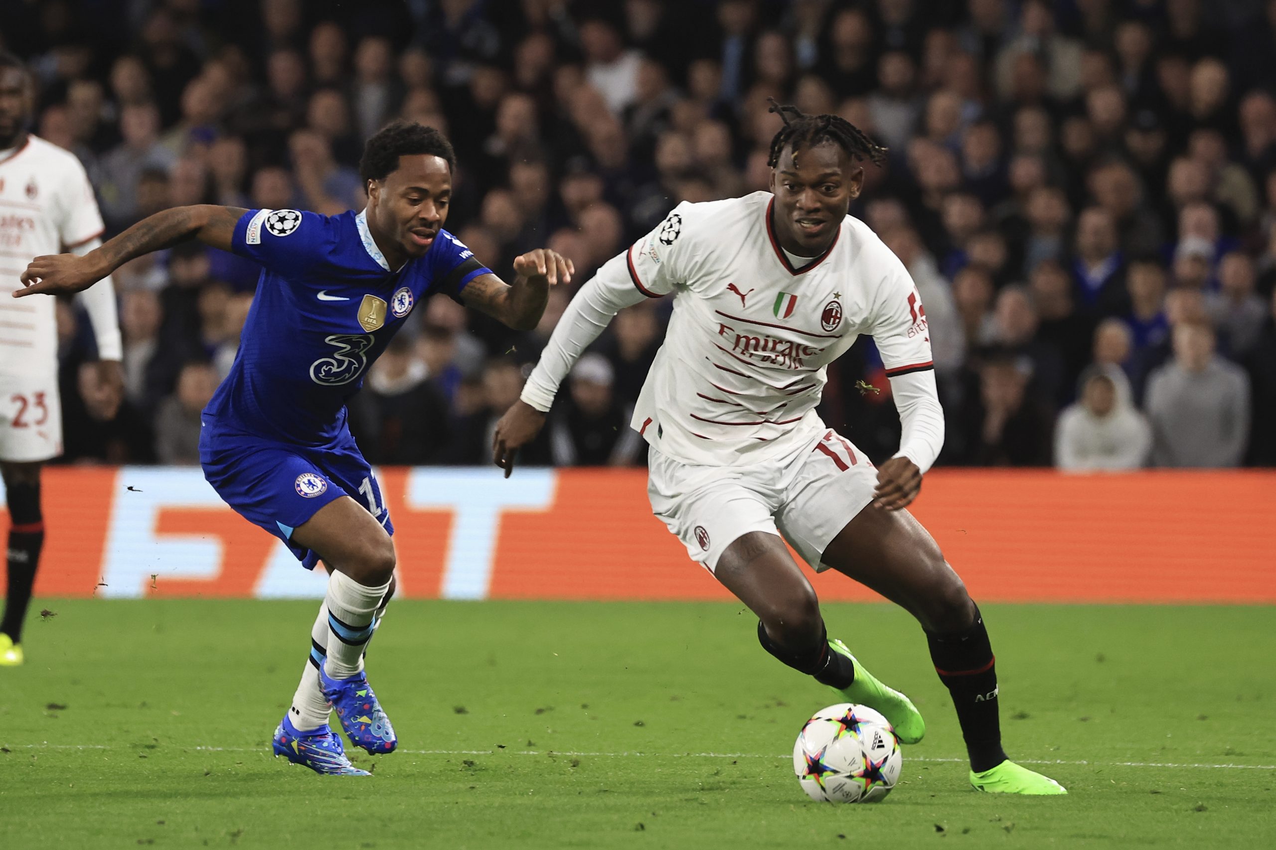 LONDON, ENGLAND - OCTOBER 05: Rafael Leao of AC Milan in action during the UEFA Champions League group E match between Chelsea FC and AC Milan at Stamford Bridge on October 05, 2022 in London, England. (Photo by Giuseppe Cottini/AC Milan via Getty Images )