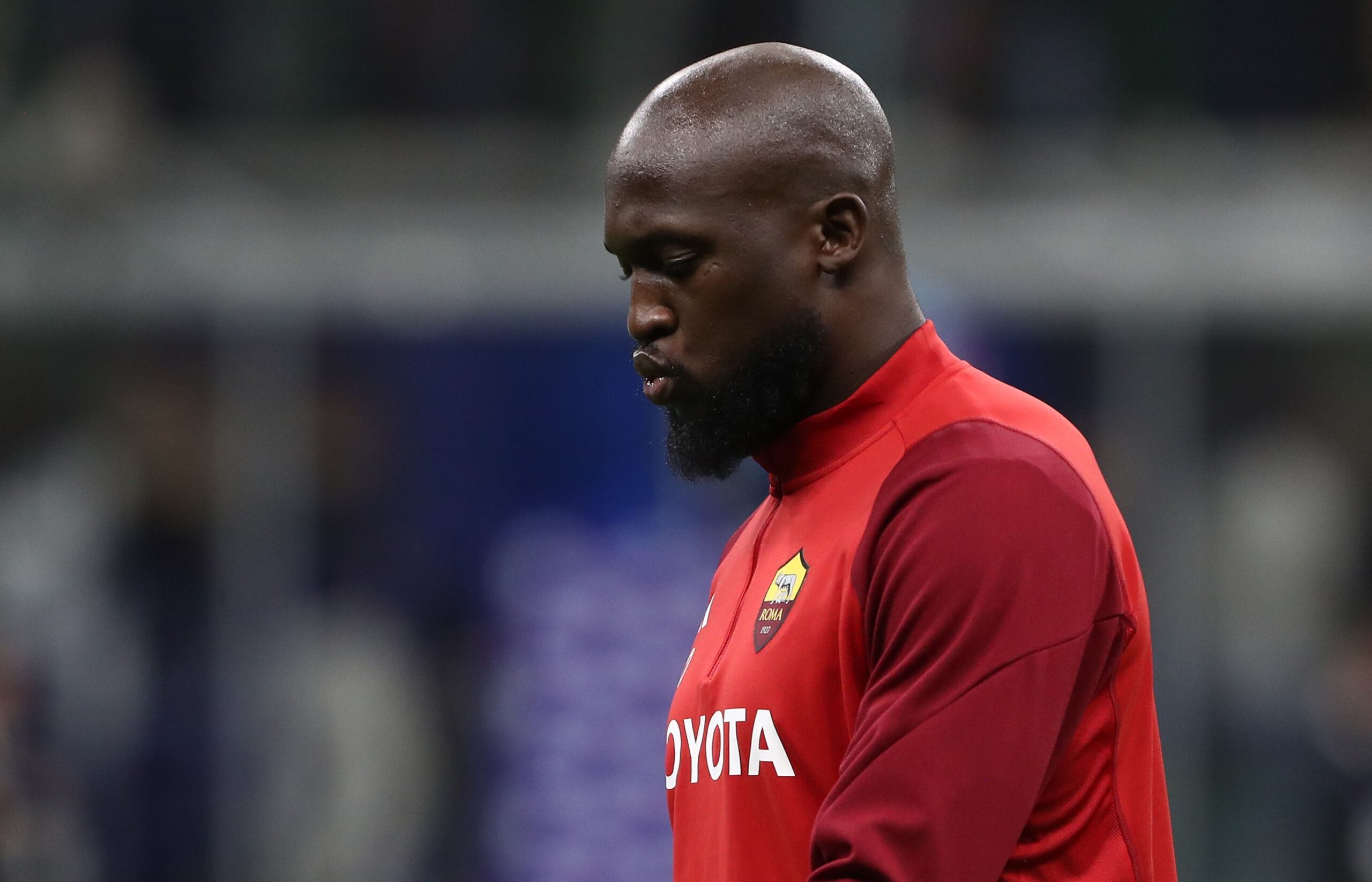 MILAN, ITALY - OCTOBER 29: Romelu Lukaku of AS Roma during the warm up prior tothe Serie A TIM match between FC Internazionale and AS Roma at Stadio Giuseppe Meazza on October 29, 2023 in Milan, Italy. (Photo by Marco Luzzani/Getty Images)