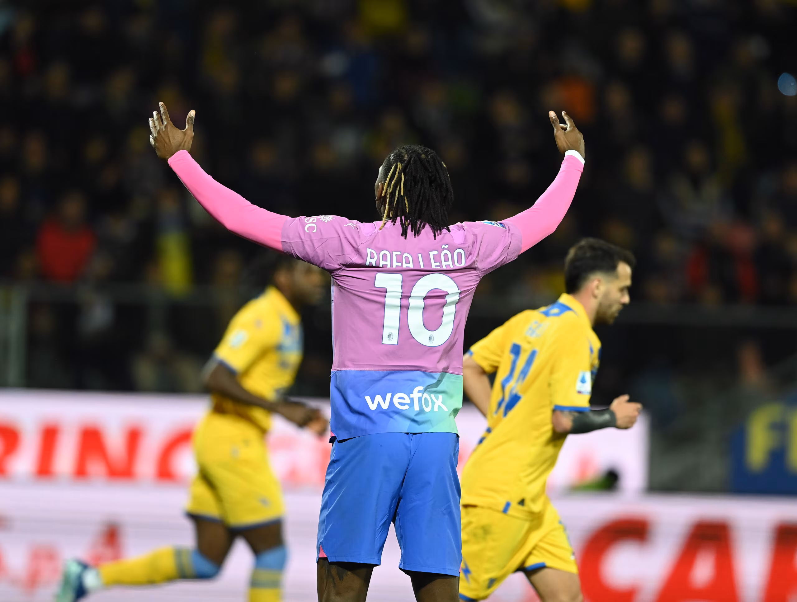 FROSINONE, ITALY - FEBRUARY 03: Rafael Leao of AC Milan reacts during the Serie A TIM match between Frosinone Calcio and AC Milan at Stadio Benito Stirpe on February 03, 2024 in Frosinone, Italy. (Photo by Claudio Villa/AC Milan via Getty Images)