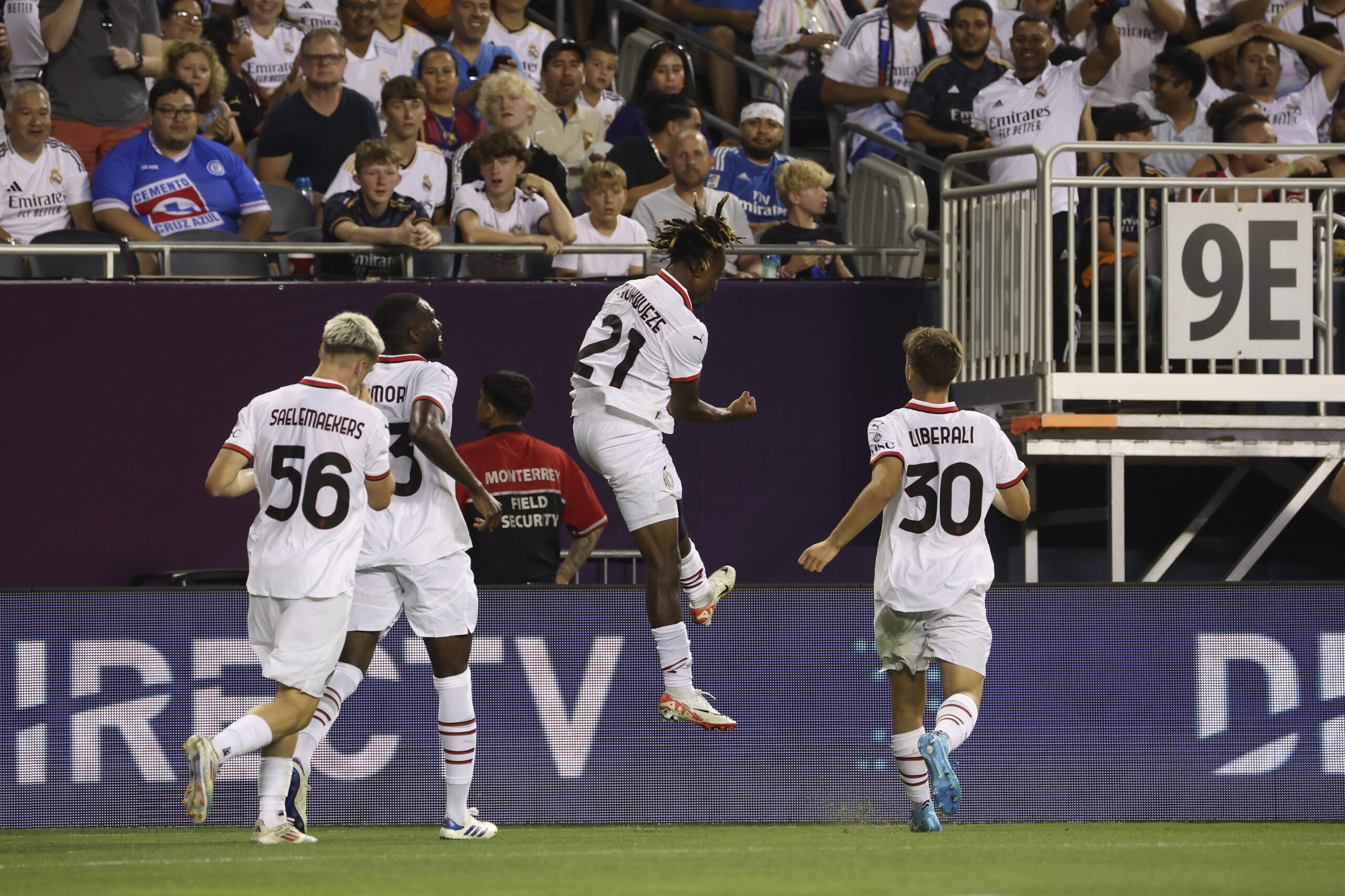 CHICAGO, ILLINOIS - JULY 31: Samuel Chukwueze of AC Milan celebrates after scoring the opening goal during the Pre-Season Friendly match between AC Milan and Real Madrid at Soldier Field on July 31, 2024 in Chicago, Illinois. (Photo by Giuseppe Cottini/AC Milan via Getty Images)