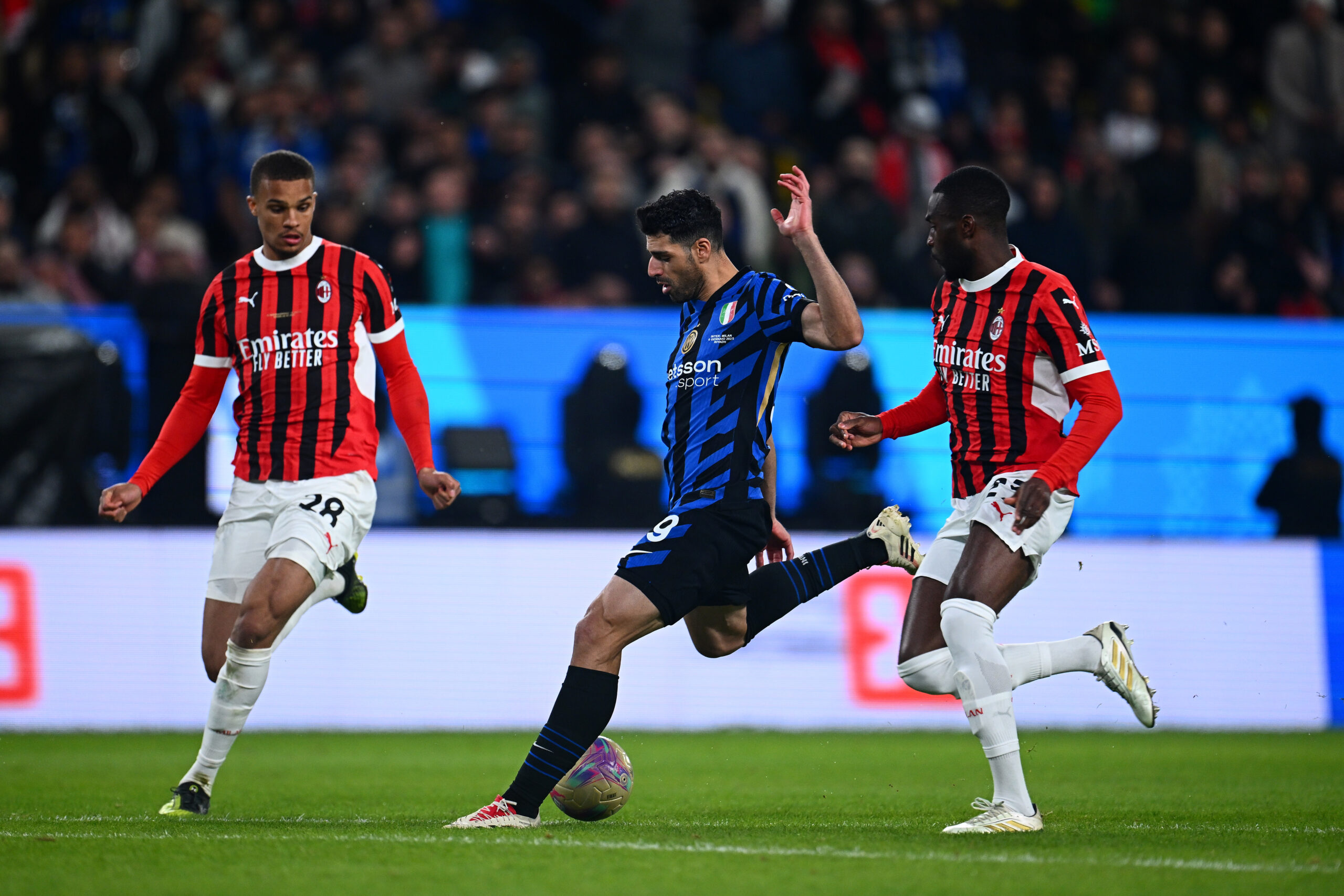 RIYADH, SAUDI ARABIA - JANUARY 06: Mehdi Taremi of FC Internazionale scores their team's second goal during the Italian Super Cup Final match between FC Internazionale and AC Milan at Al-Awwal Park Stadium on January 06, 2025 in Riyadh, Saudi Arabia. (Photo by Mattia Ozbot - Inter/Inter via Getty Images)