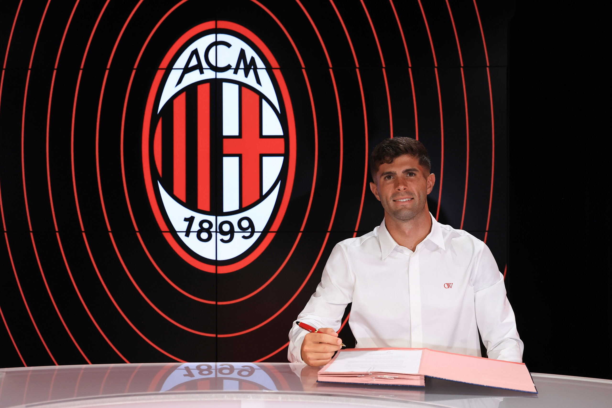 MILAN, ITALY - JULY 12: AC Milan new signing Christian Pulisic signs his contract with the club at Casa Milan on July 12, 2023 in Milan, Italy. (Photo by Giuseppe Cottini/AC Milan via Getty Images)