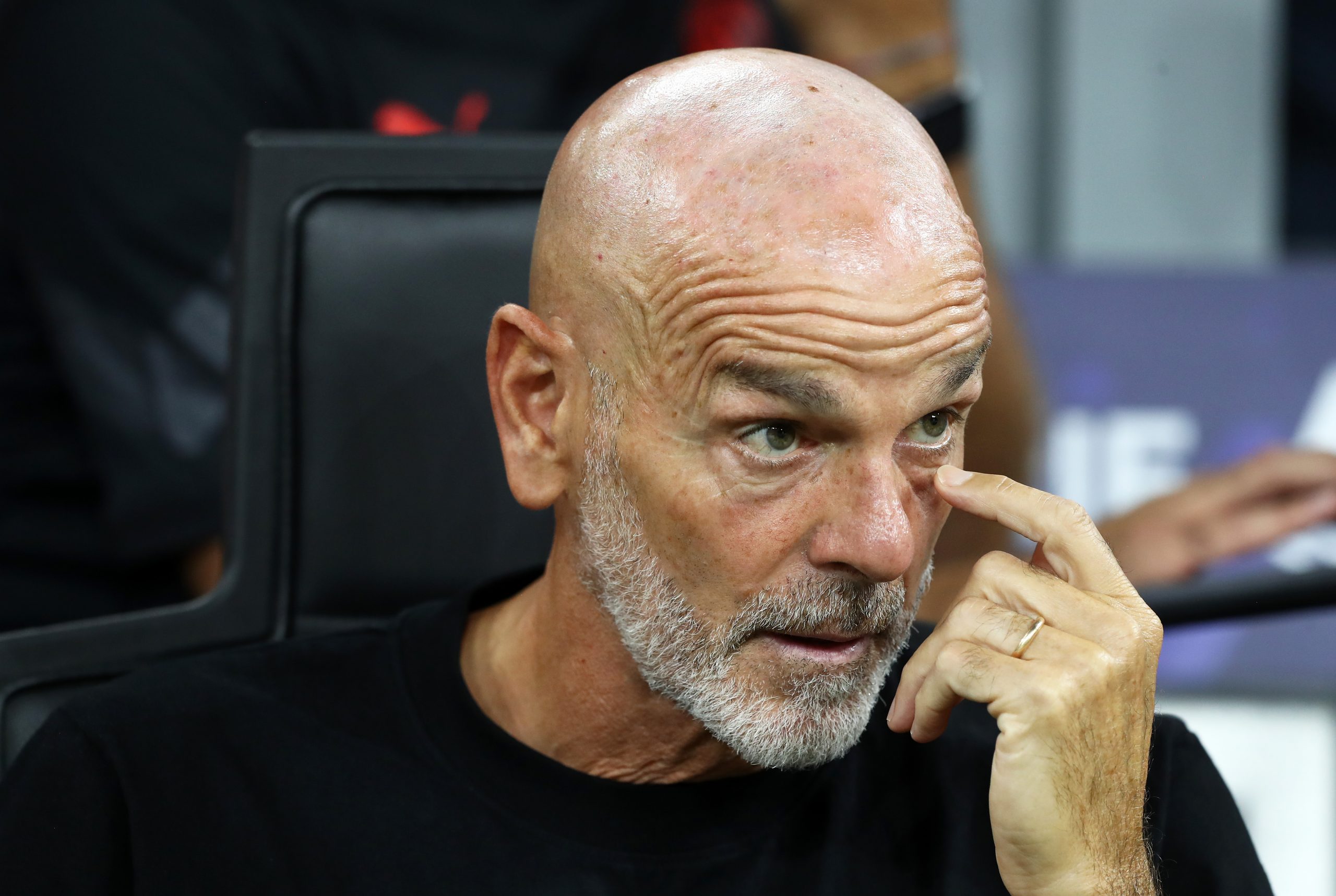 MILAN, ITALY - AUGUST 27: Stefano Pioli, Head Coach of AC Milan looks on prior to the Serie A match between AC Milan and Bologna FC at Stadio Giuseppe Meazza on August 27, 2022 in Milan, Italy. (Photo by Marco Luzzani/Getty Images)