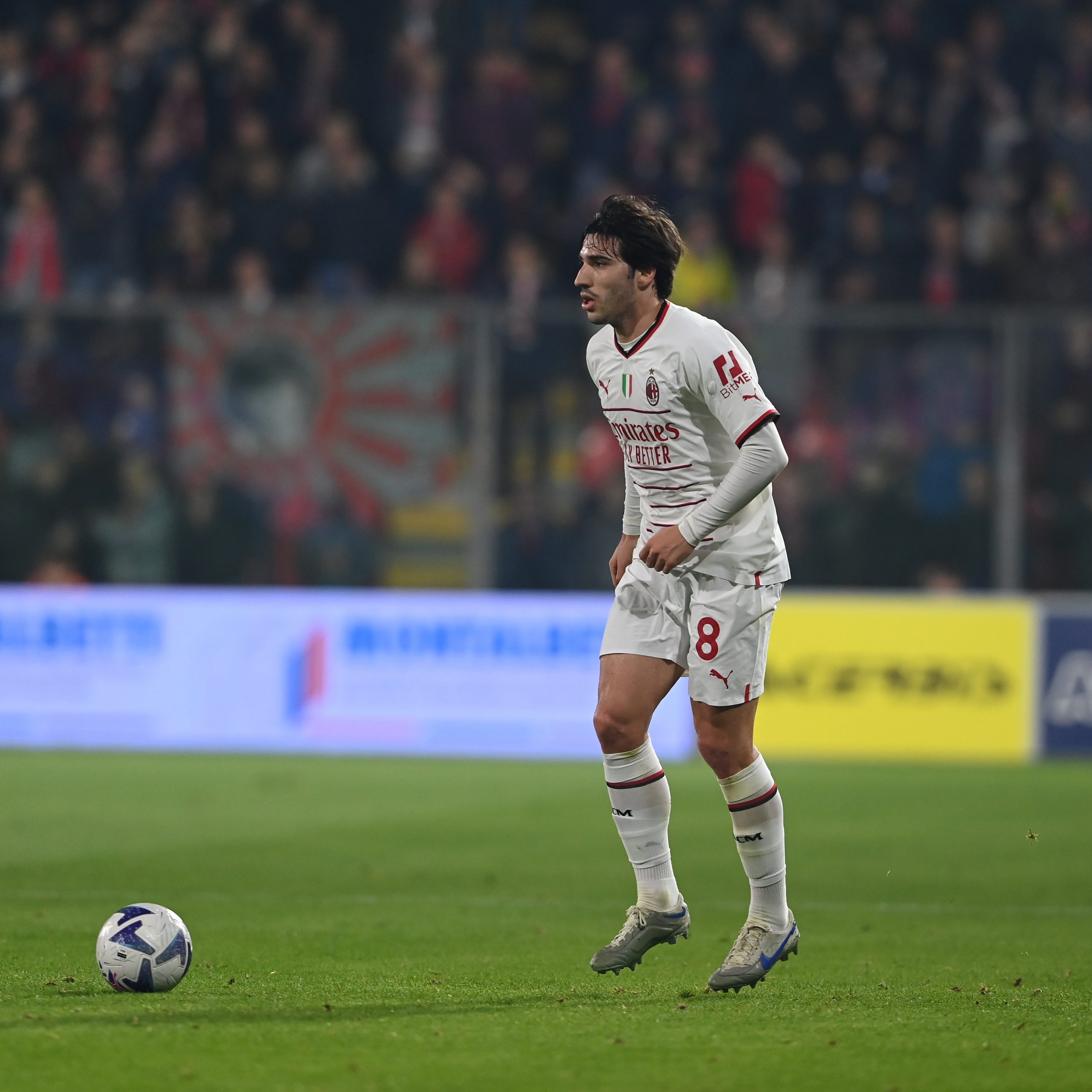 CREMONA, ITALY - NOVEMBER 08: Sandro Tonali of AC Milan in action during the Serie A match between US Cremonese and AC Milan at Stadio Giovanni Zini on November 08, 2022 in Cremona, Italy. (Photo by Claudio Villa/AC Milan via Getty Images)