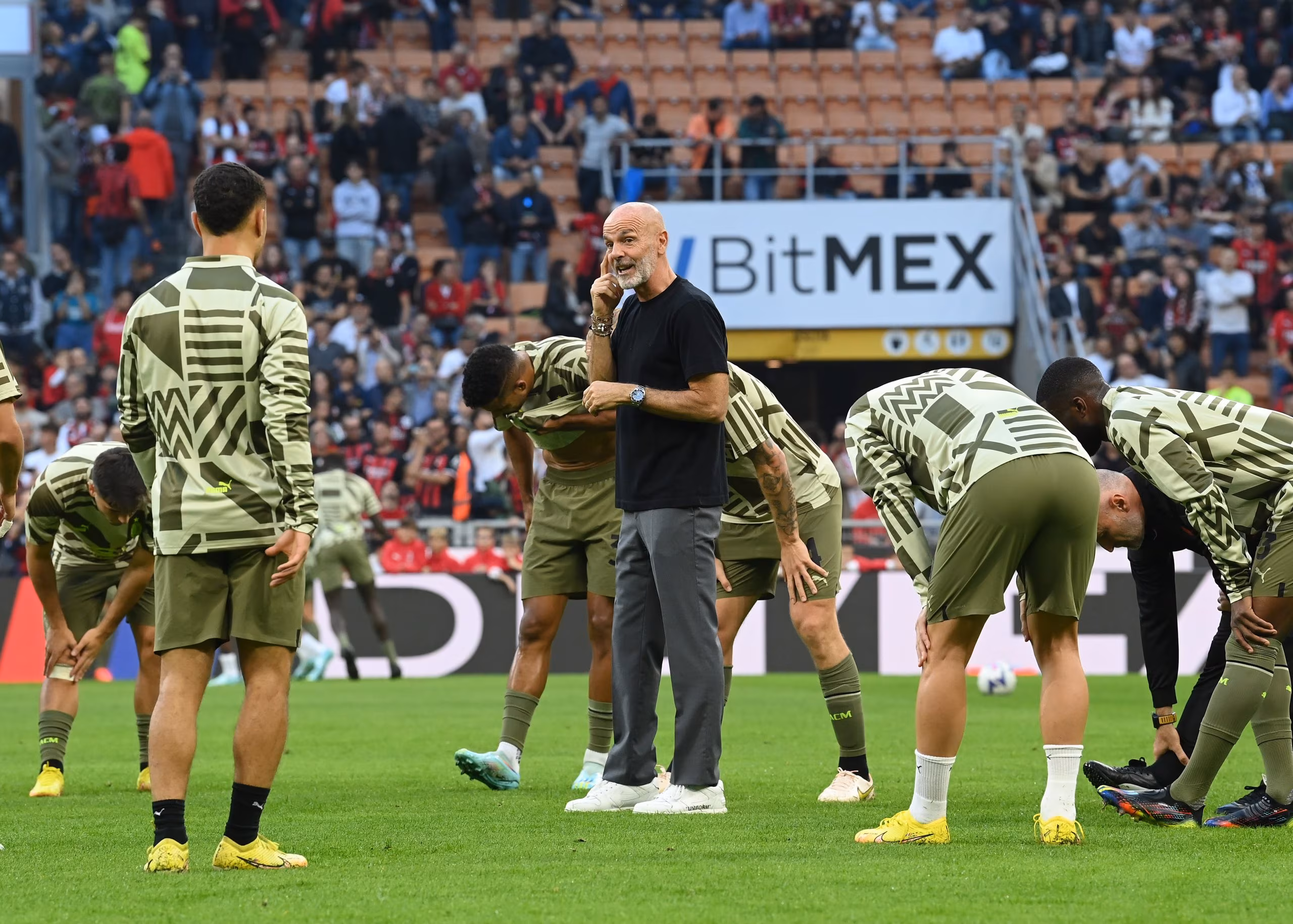 MILAN, ITALY - OCTOBER 22: Head coach of AC Milan Stefano Pioli reacts before the Serie A match between AC Milan and AC Monza at Stadio Giuseppe Meazza on October 22, 2022 in Milan, Italy . (Photo by Claudio Villa/AC Milan via Getty Images)