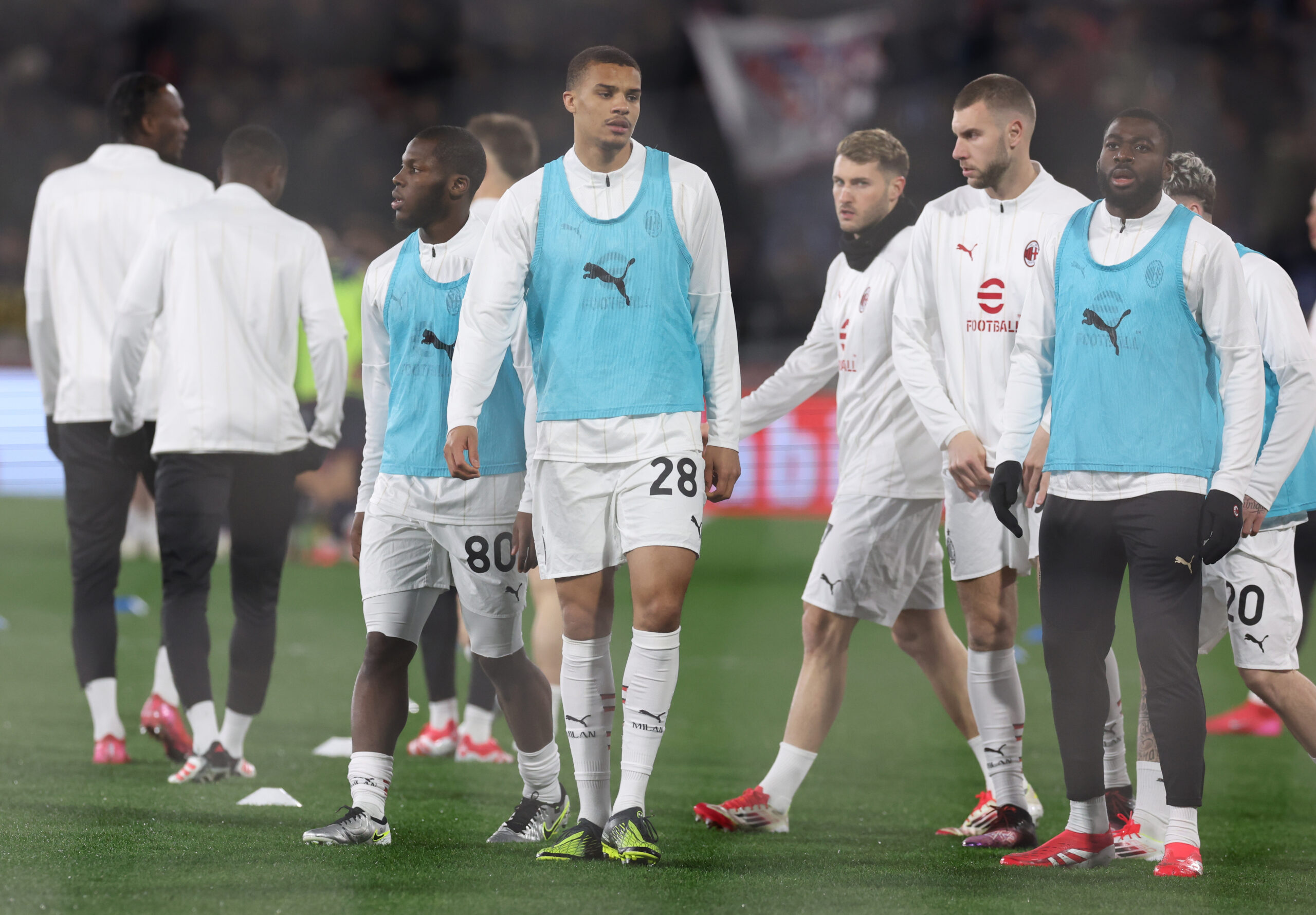 BOLOGNA, ITALY - FEBRUARY 27: Malick Thiaw of AC Milan warms up ahead before the Serie A match between Bologna and AC Milan at Stadio Renato Dall'Ara on February 27, 2025 in Bologna, Italy. (Photo by Claudio Villa/AC Milan via Getty Images)