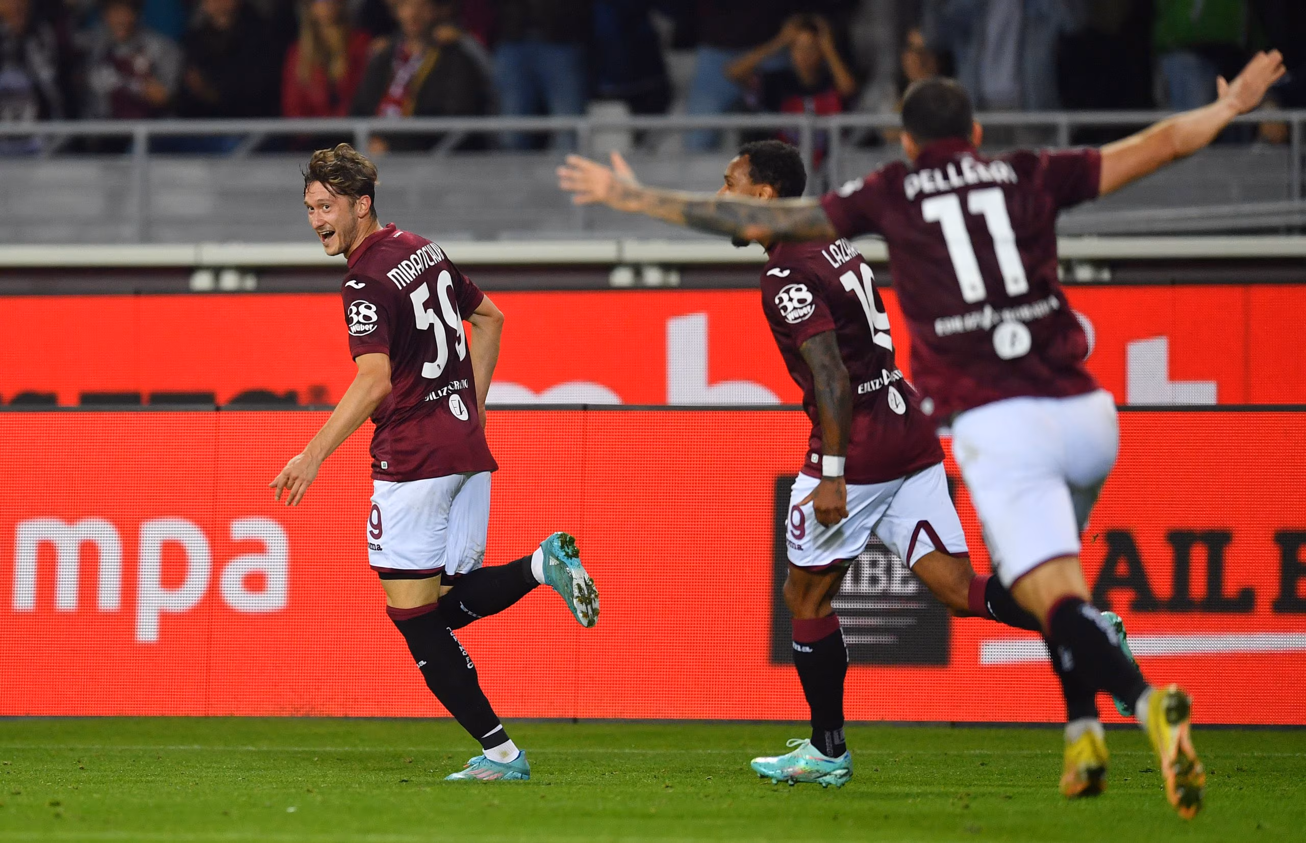 TURIN, ITALY - OCTOBER 30: Aleksei Miranchuk of Torino FC celebrates after scoring their team's second goal during the Serie A match between Torino FC and AC MIlan at Stadio Olimpico di Torino on October 30, 2022 in Turin, Italy. (Photo by Valerio Pennicino/Getty Images)