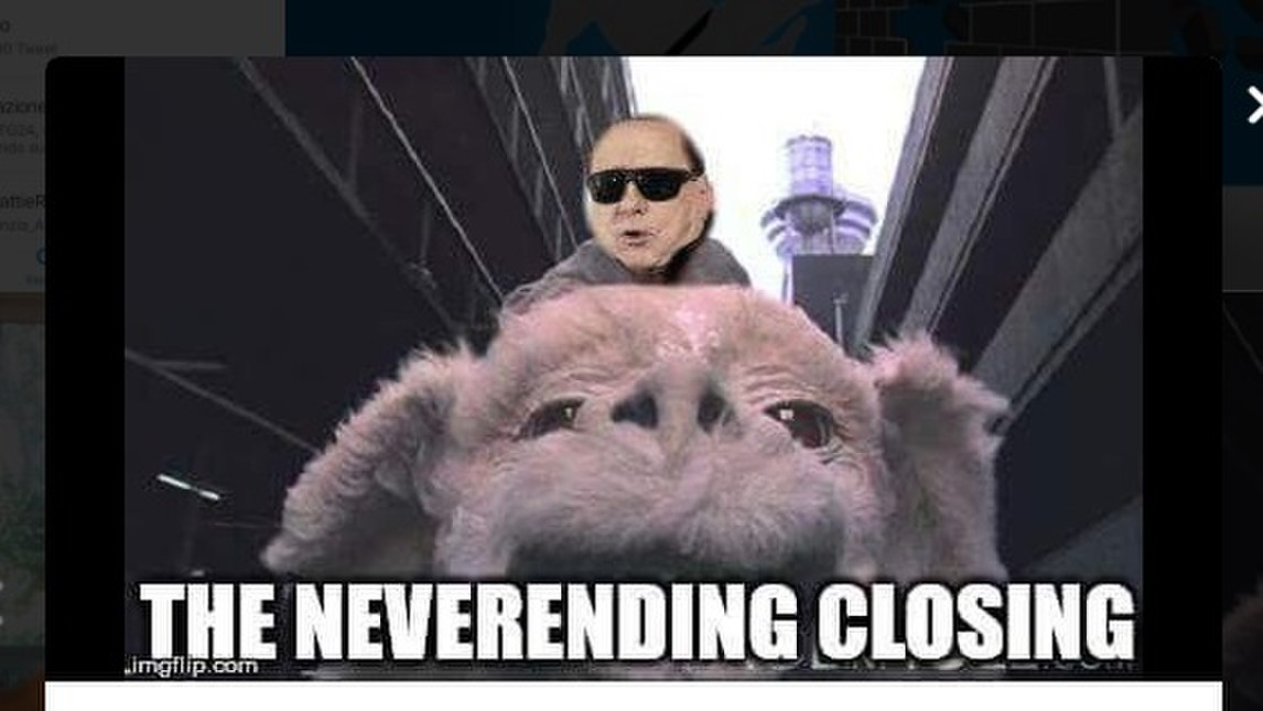 MILANO – Il web non perdona e così, dopo l’ennesimo rinvio del closing, la grottesca trattativa tra Fininvest e SES per il passaggio di proprietà del Milan è divenuta oggetto degli sfottò dei social network. E così tra facebook e Twitter impazzano i meme sulla trattativa, passata da closing a nevernding.