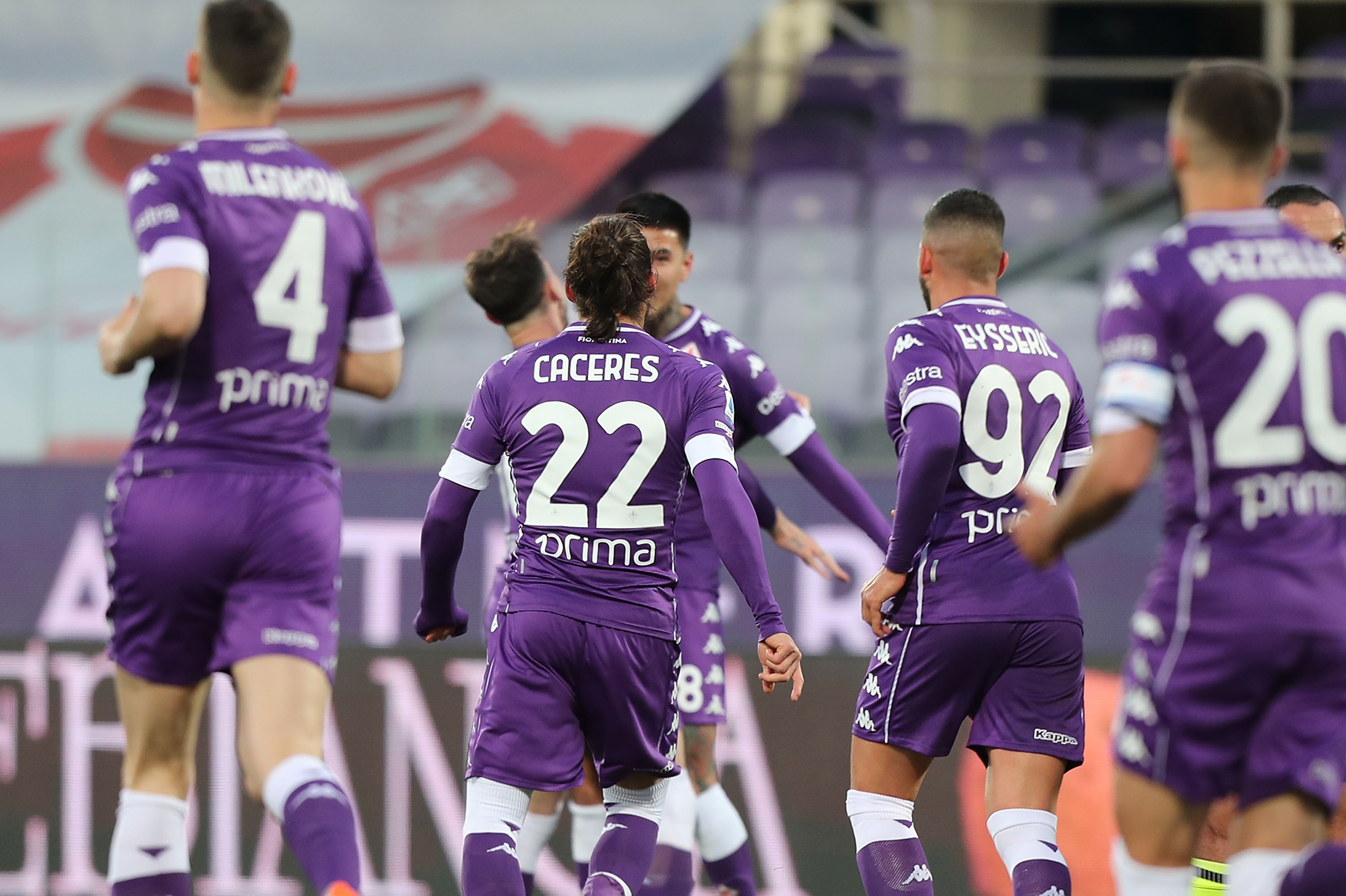I giocatori della Fiorentina festeggiano per il gol realizzato da Pulgar
