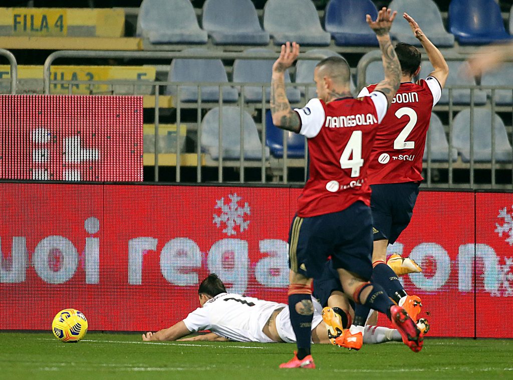 Nella ripresa serve l’intervento del VAR per convalidare la doppietta di Zlatan Ibrahimovic. Quest’ultimo, messo davanti alla porta da un lancio straordinario di Davide Calabria, batte per la seconda volta Alessio Cragno ma il guardalinee annulla per fuorigioco. La posizione del numero 11, però, è regolare e infatti il VAR convalida la rete che vale il 2-0 per i rossoneri. Tra il sessantaseiesimo e il settantaquattresimo Alexis Saelemaekers diventa protagonista, in negativo, della partita. Il belga si fa ammonire due volte nel giro di otto minuti: entrambi i cartellini gialli sono ineccepibili e arriva giustamente l’espulsione. Gli episodi tuttavia non sono ancora finiti, perché nell’assalto finale del Cagliari Sottil viene toccato in area di rigore da Brahim Diaz. La dinamica è simile a quella che ha provocato la massima punizione per il Milan a inizio gara. Abisso decide di non fischiare e di non rivedere l’azione al VAR, ma il rigore ci poteva stare. >>> E intanto Elliott vuole sognare in grande, tra Champions e Scudetto: arriva il sì definitivo per tre grandi colpi a gennaio! <<<