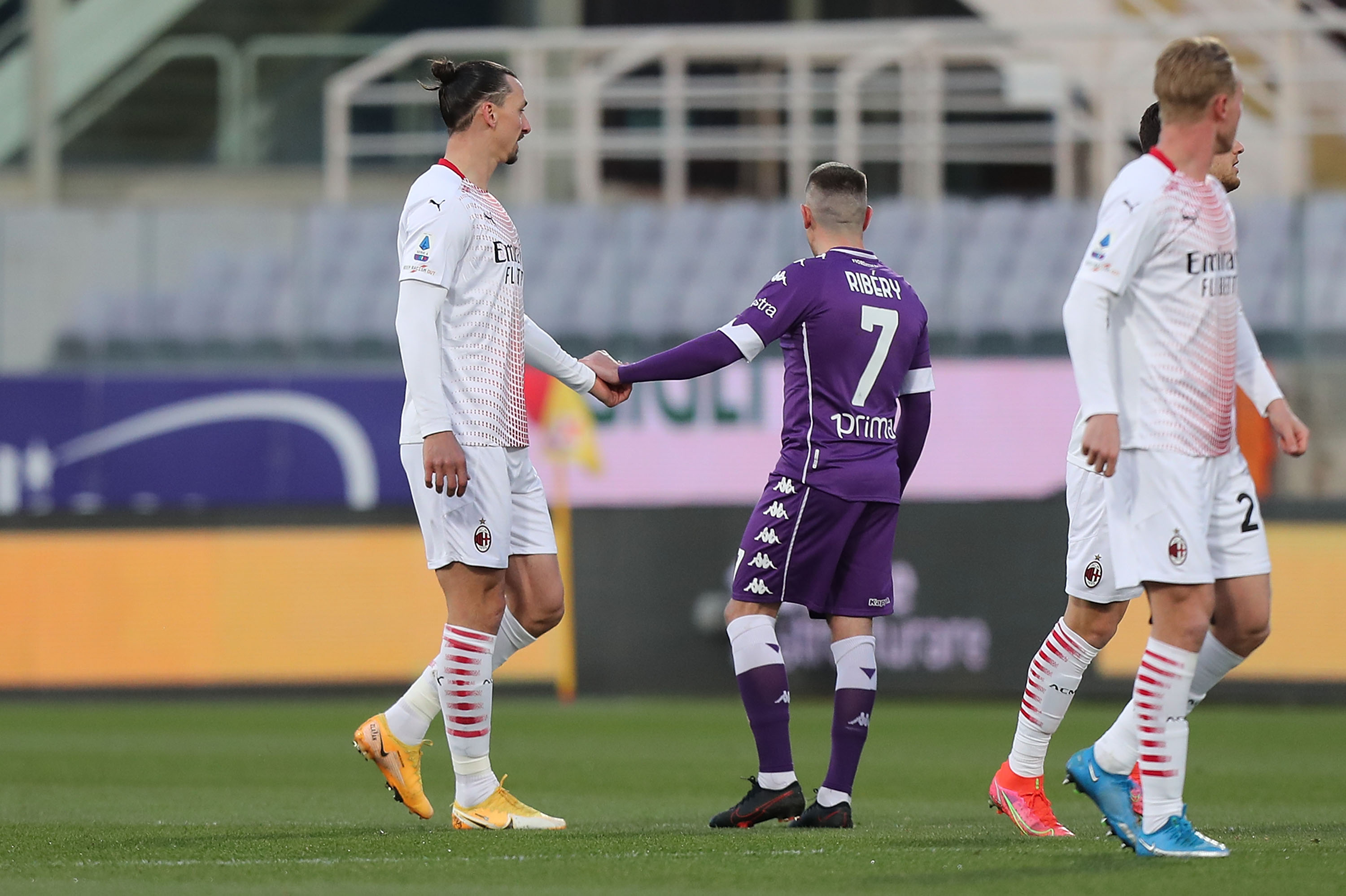 Ibrahimovic e Ribery durante Fiorentina-Milan