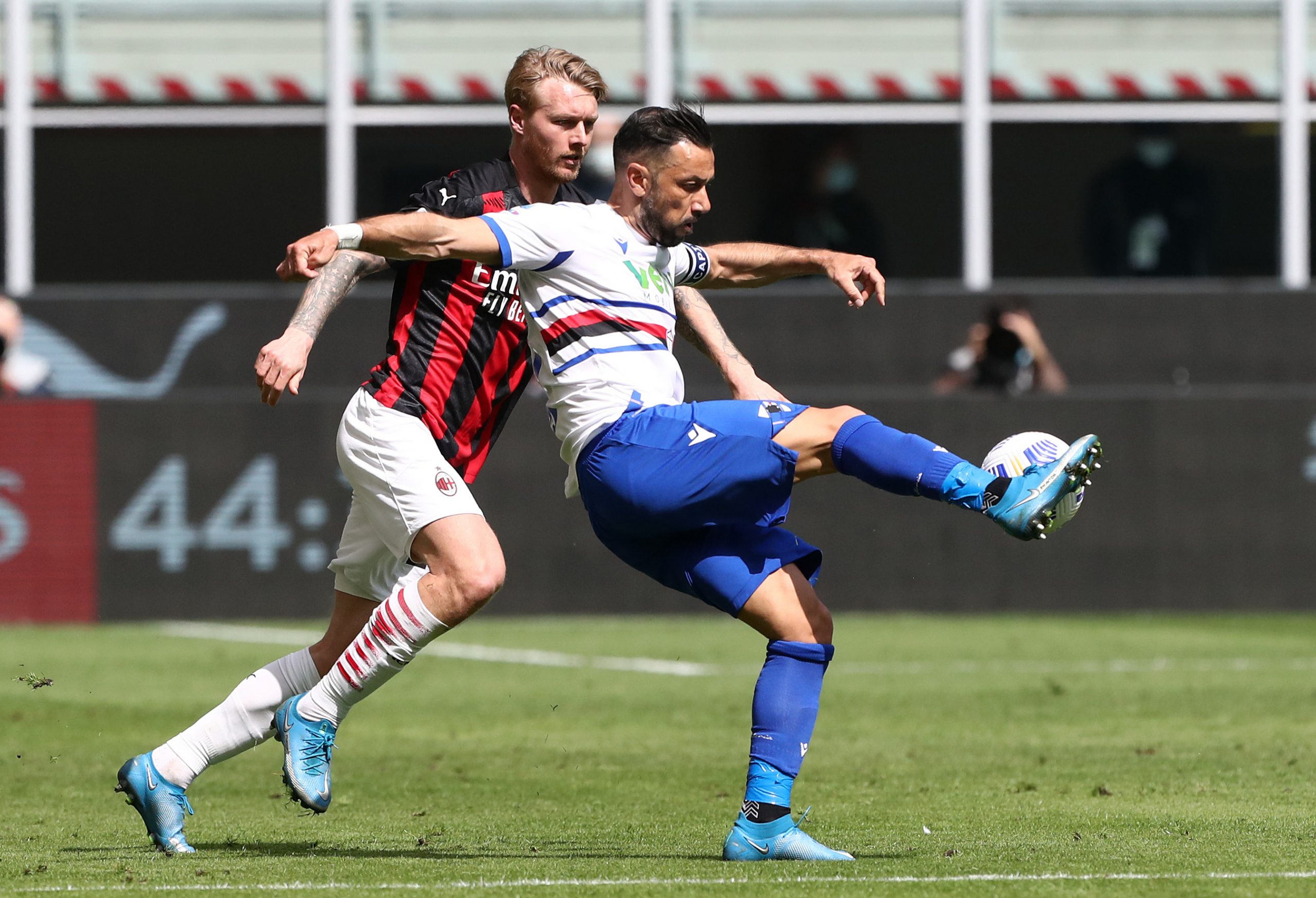 Quagliarella e Kjaer durante Milan-Sampdoria
