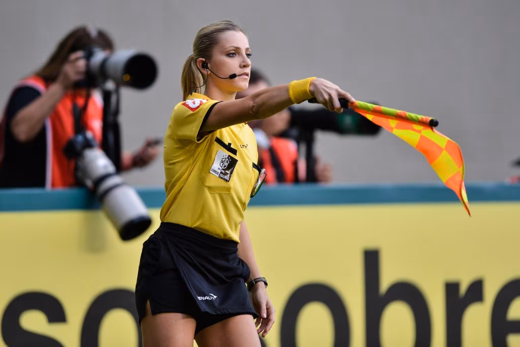 Fernanda Colombo è un arbitro brasiliano, brava e bella. Ma il siparietto di cui si è resa protagonista le fa guadagnare punti in simpatia.